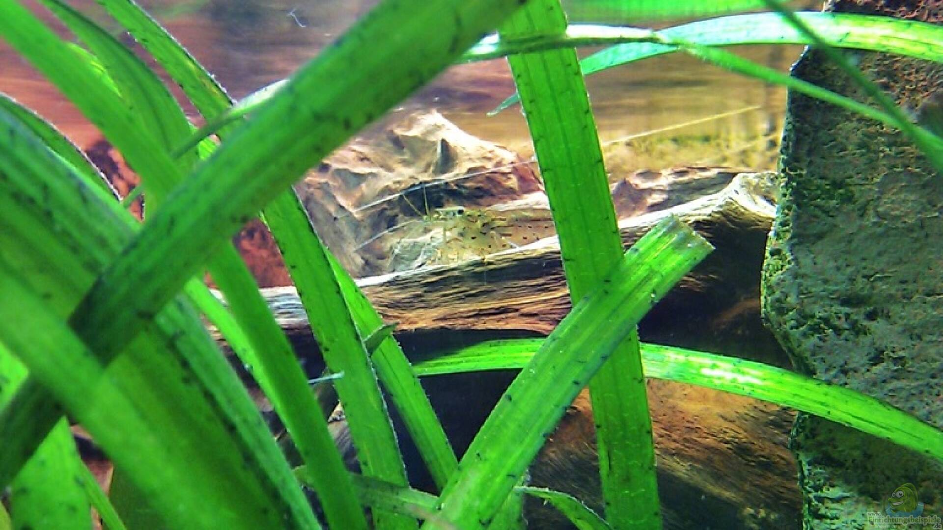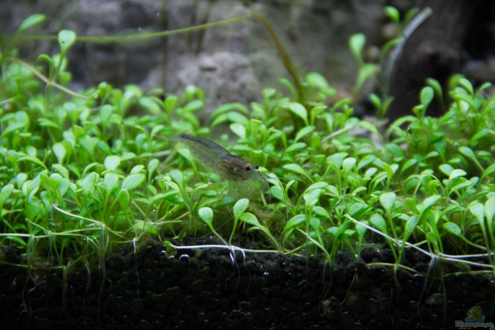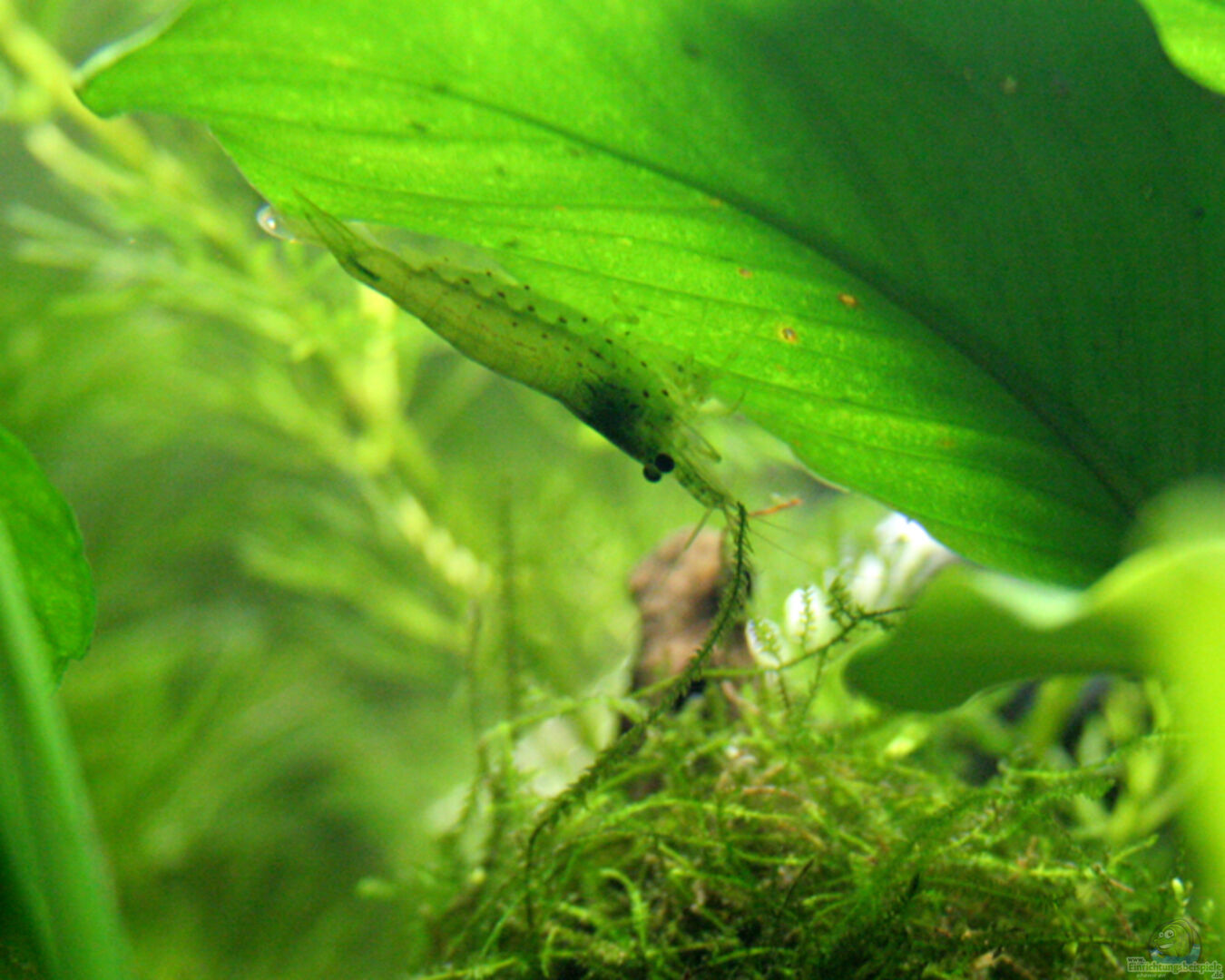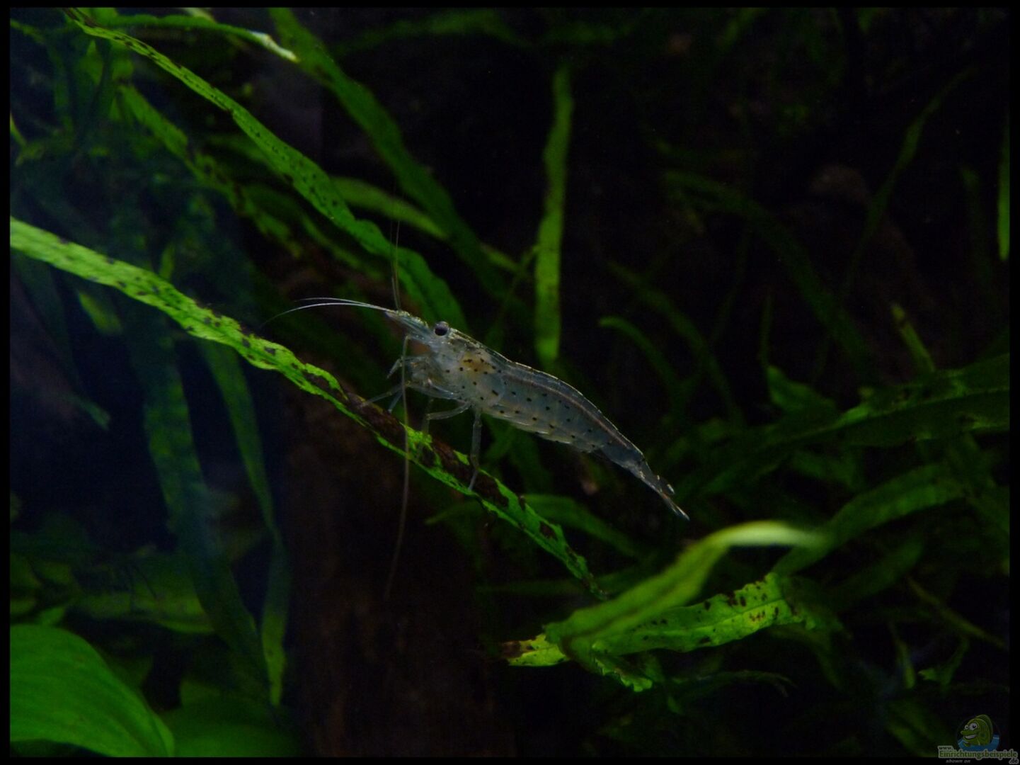 Für eine Zwerggarnele wird die Amano-Garnele mit 5cm recht groß. Eine Gruppe Amanogarnelen von 10 bis 20 Tieren kann in einem Aquarium ab 60cm Kantenlänge gehalten werden.
