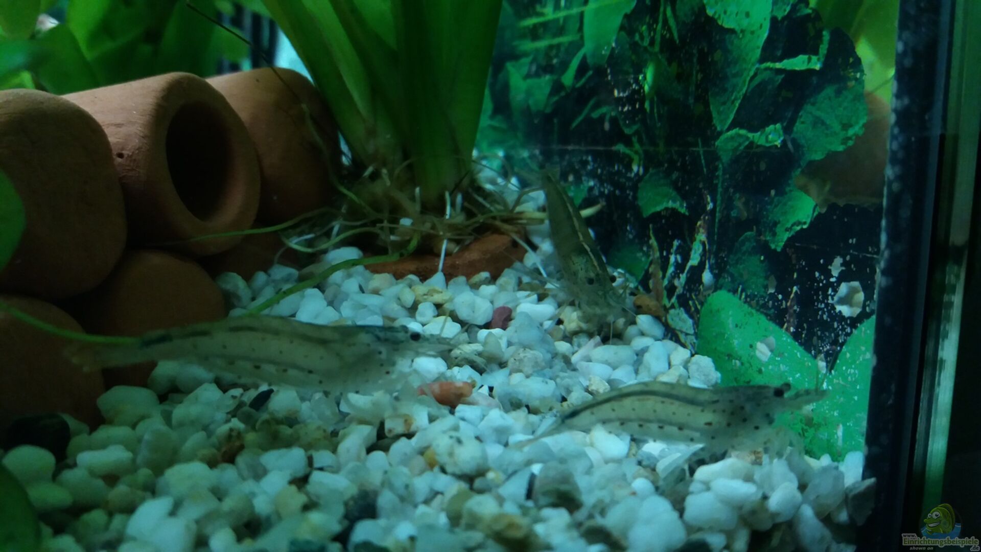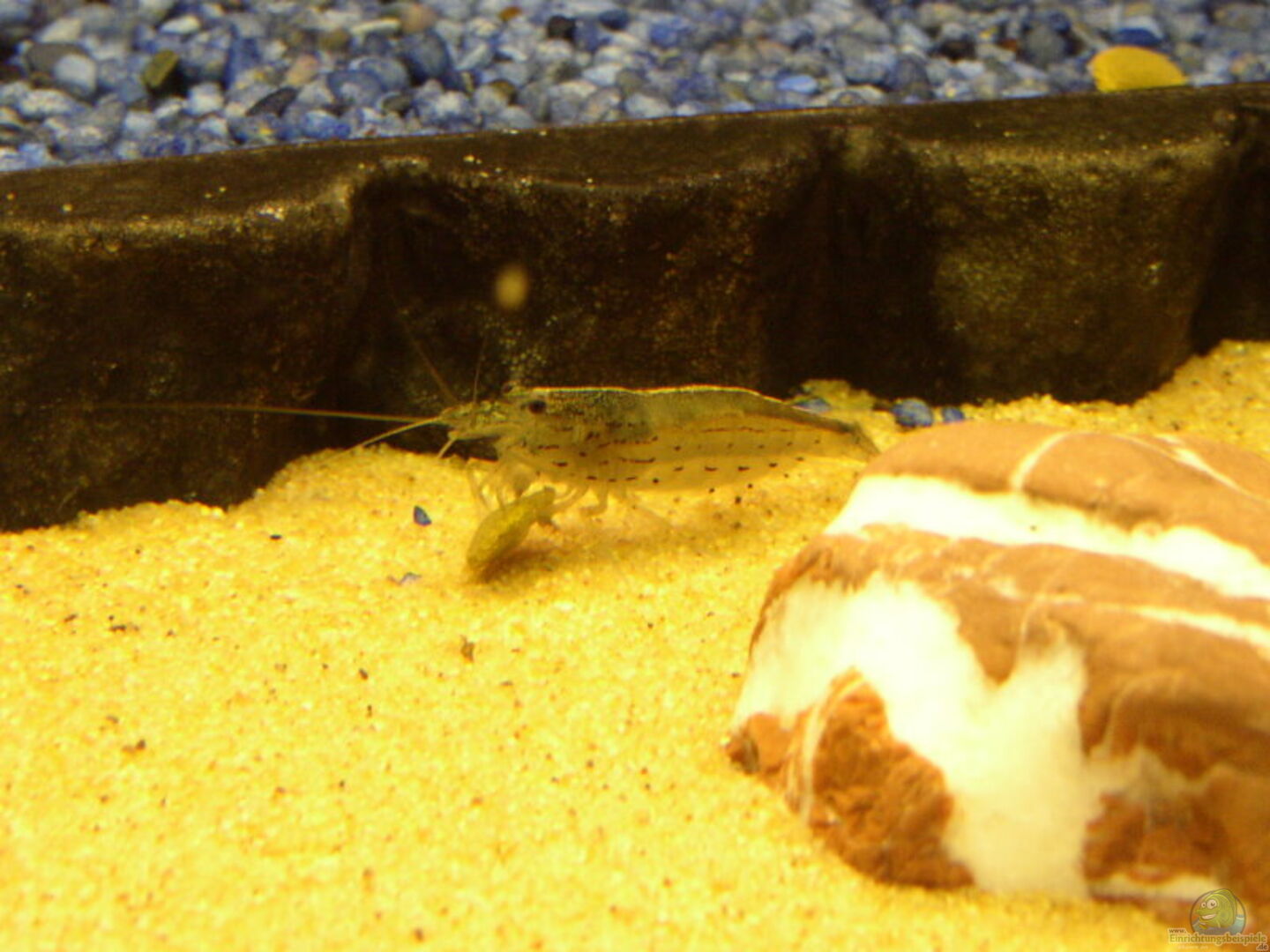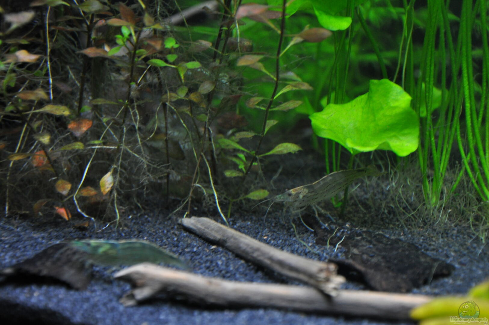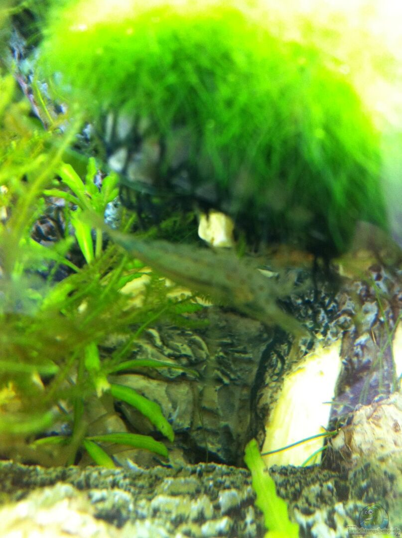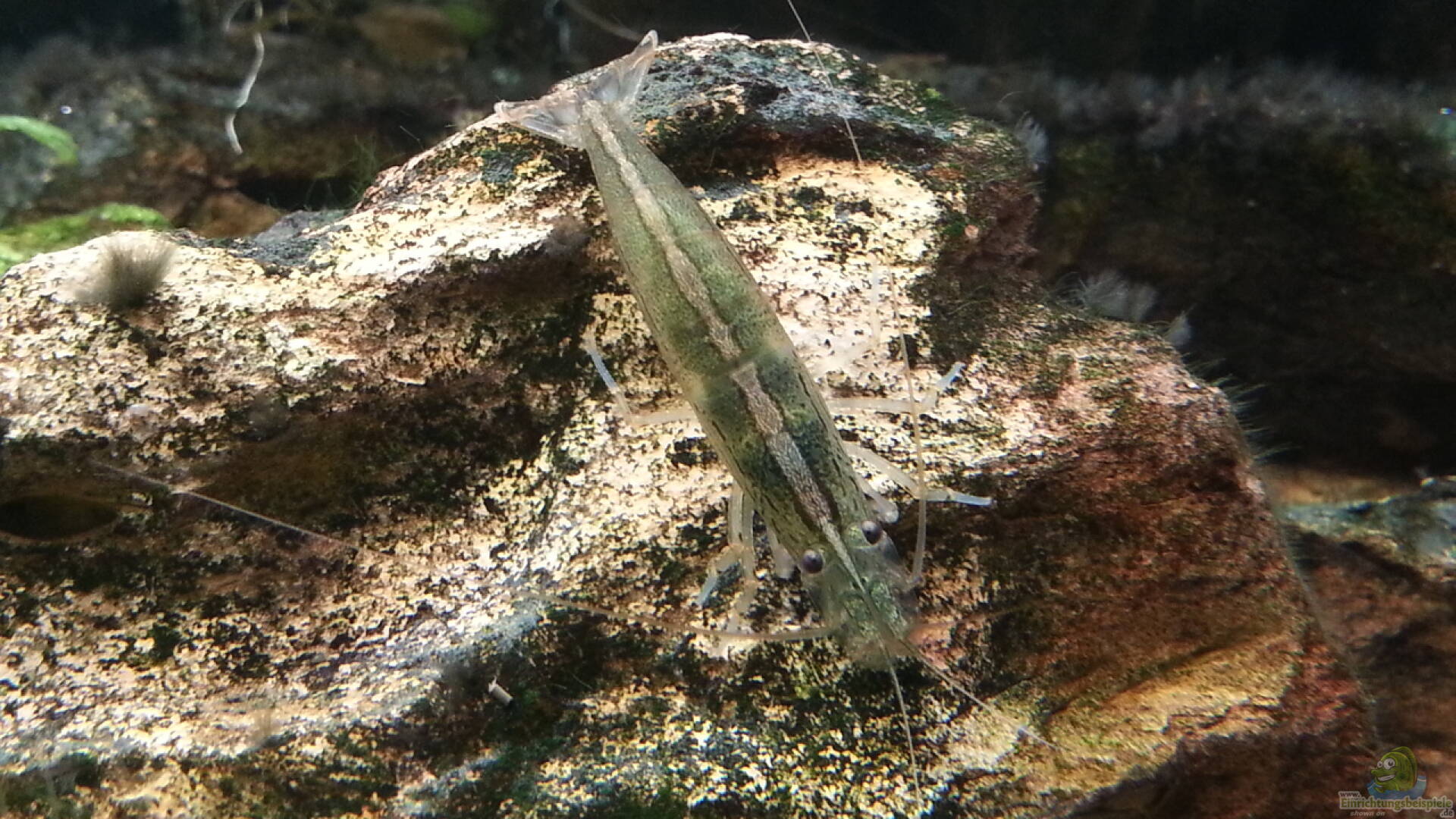 Für eine Zwerggarnele wird die Amano-Garnele mit 5cm recht groß. Eine Gruppe Amanogarnelen von 10 bis 20 Tieren kann in einem Aquarium ab 60cm Kantenlänge gehalten werden.