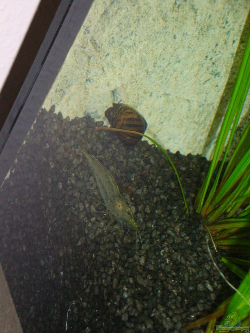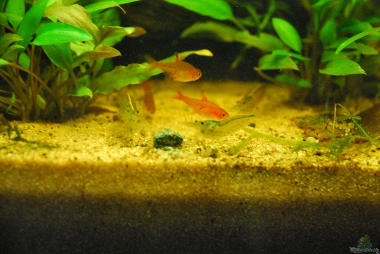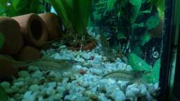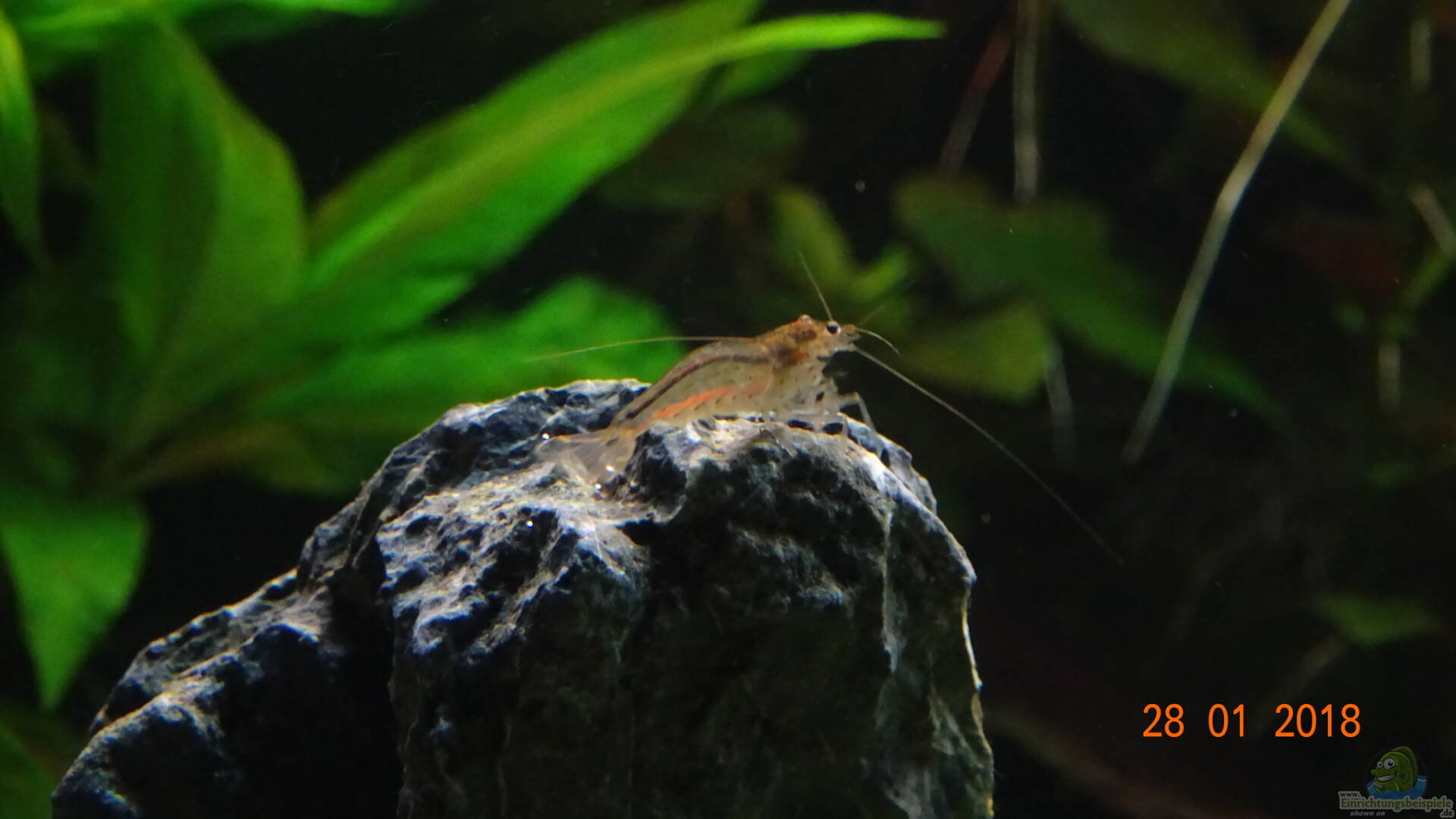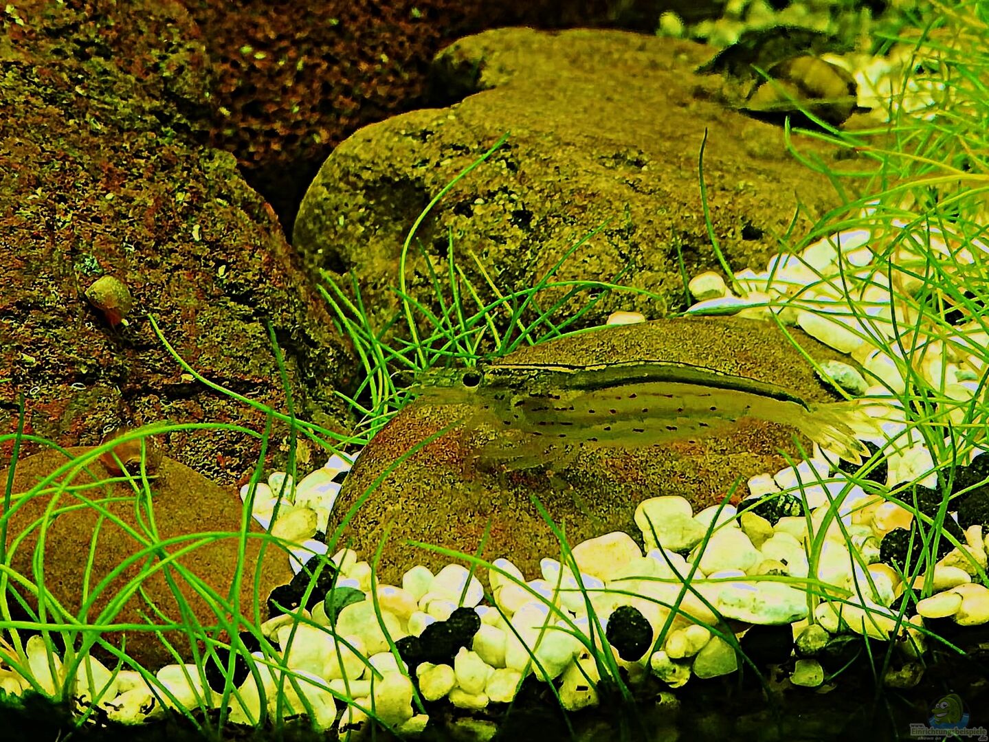 Für eine Zwerggarnele wird die Amano-Garnele mit 5cm recht groß. Eine Gruppe Amanogarnelen von 10 bis 20 Tieren kann in einem Aquarium ab 60cm Kantenlänge gehalten werden.