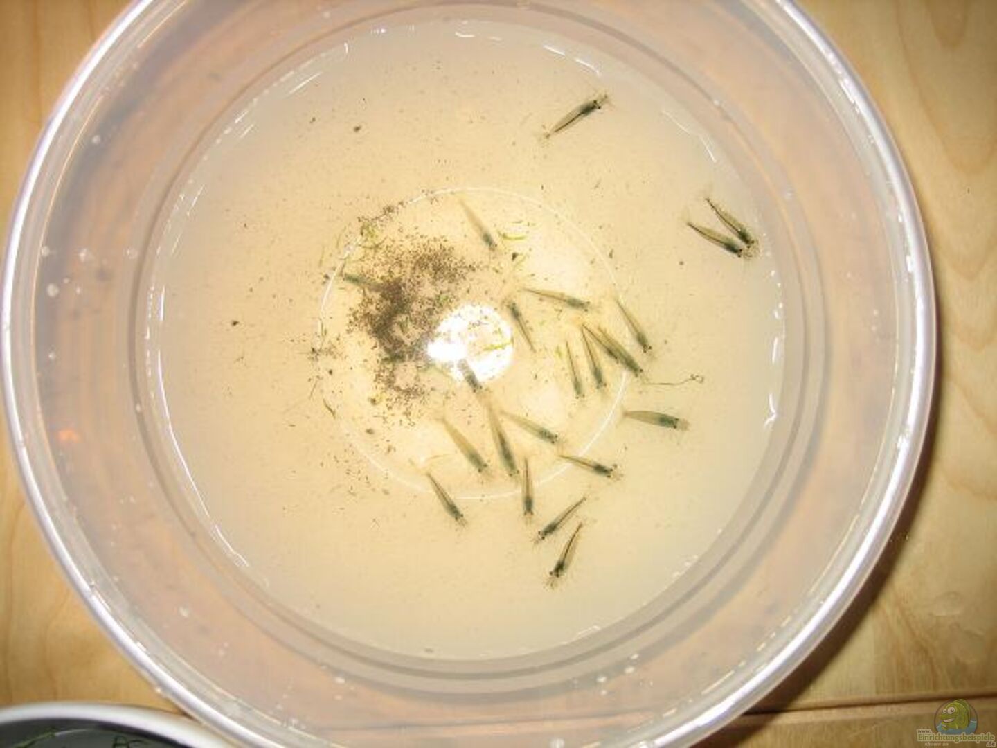 Obwohl die Garnelen als gute Algenfresser selbst für ihr Futter sorgen, sollte mit Spirulina-Pulver, feinen Shrimps-Flocken oder Granulatfutter zusätzliches Futter gegeben werden.