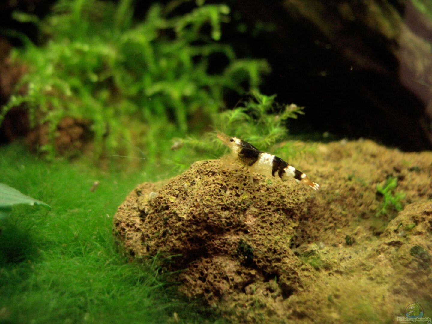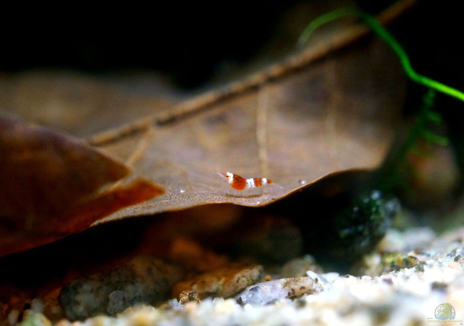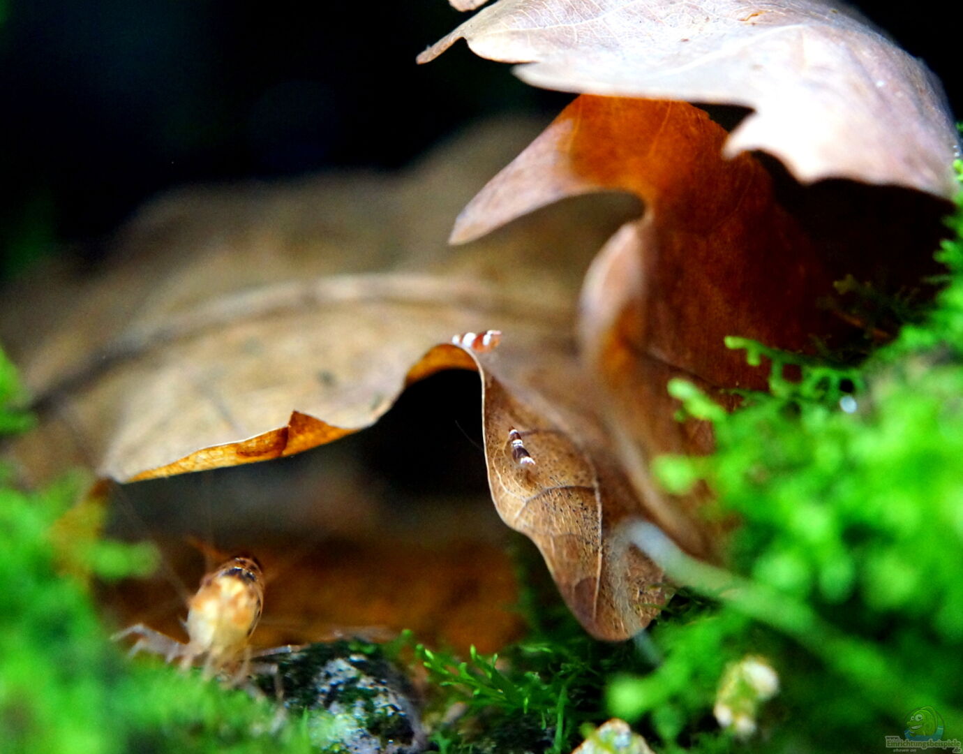 Ein passendes Aquarium sollte mit viel Falllaub und Wurzeln eingerichtet werden. Ein dunkler Bodengrund läßt die Farben der Bienengarnelen am besten zur Geltung kommen.