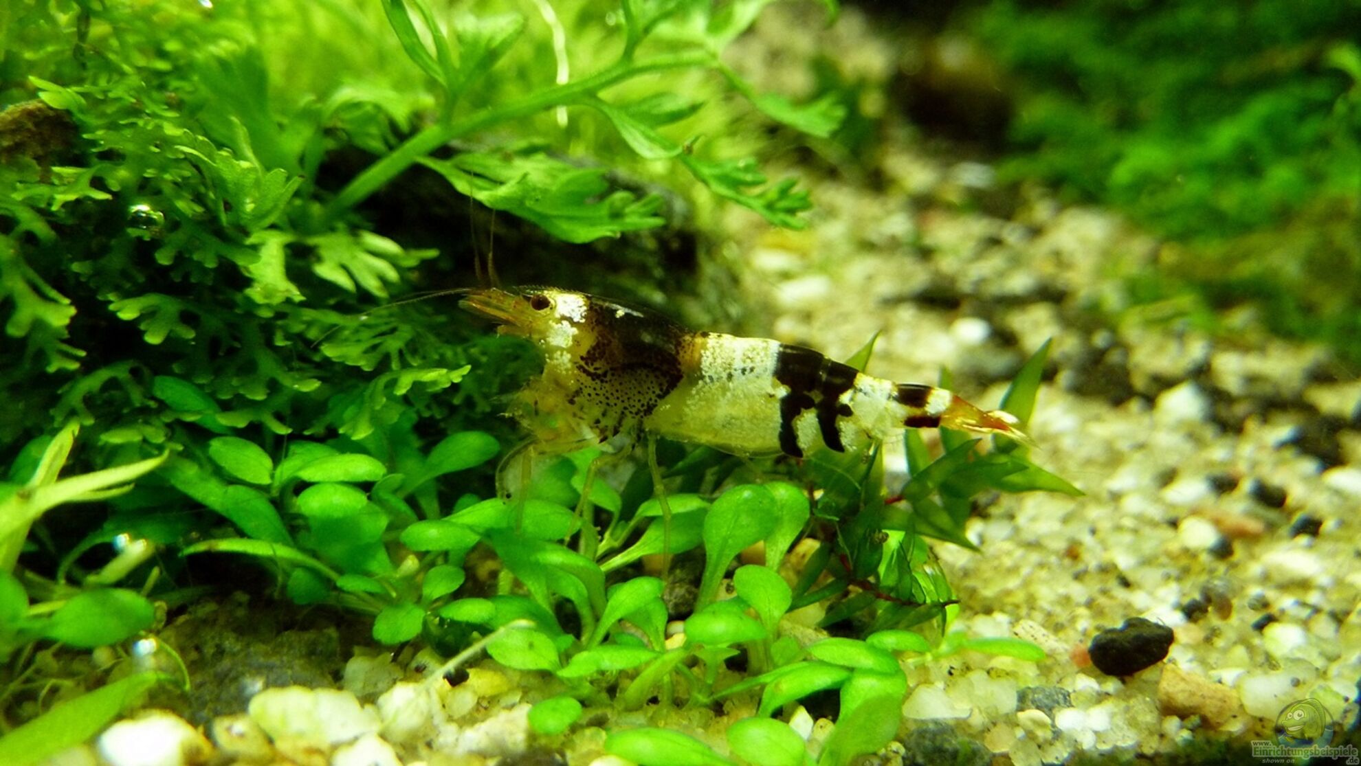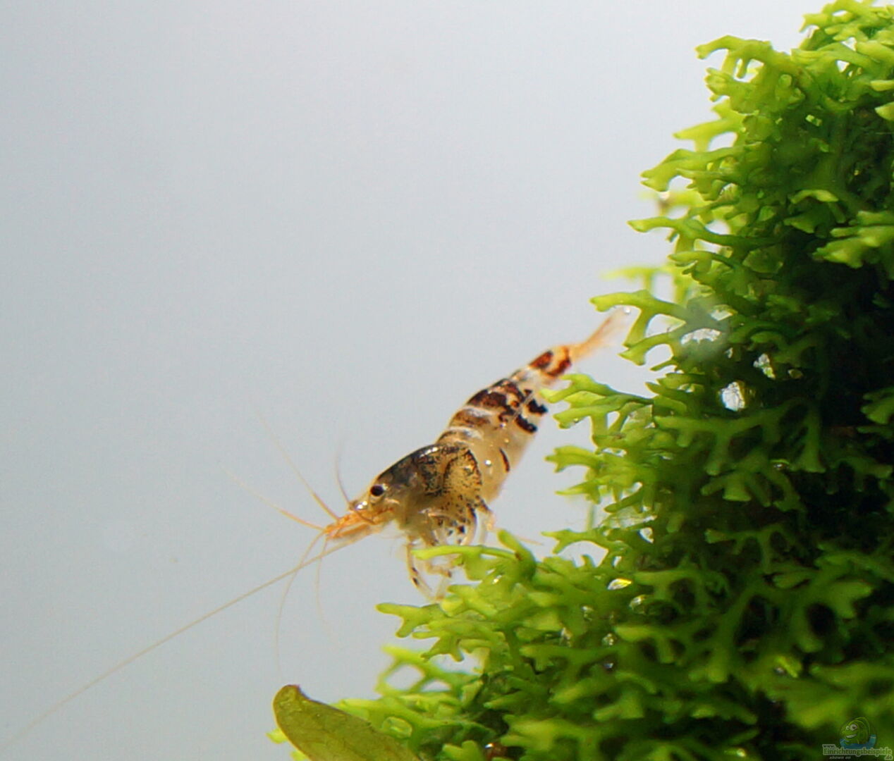Die Bienengarnele (Caridina cf. cantonensis) stammt ursprünglich aus Hongkong und gehört zu den farblich sehr attraktiven Garnelenarten. Auch wegen ihre unproblematischen Haltung wird sie immer öfter in Wirbellosen-Aquarien Eine Größe von ca. 2cm kann eine Bienengarnele erreichen, wobei die Männchen meist etwas kleiner als die Weibchen bleiben.