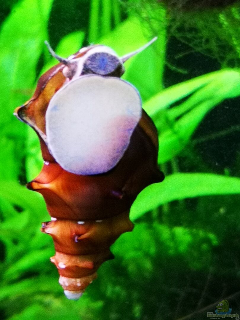 Im Aquarium ist die dunkelbraune Schnecke recht aktiv und benötigt ein Becken mit einer Größe von ca. 50 Litern.