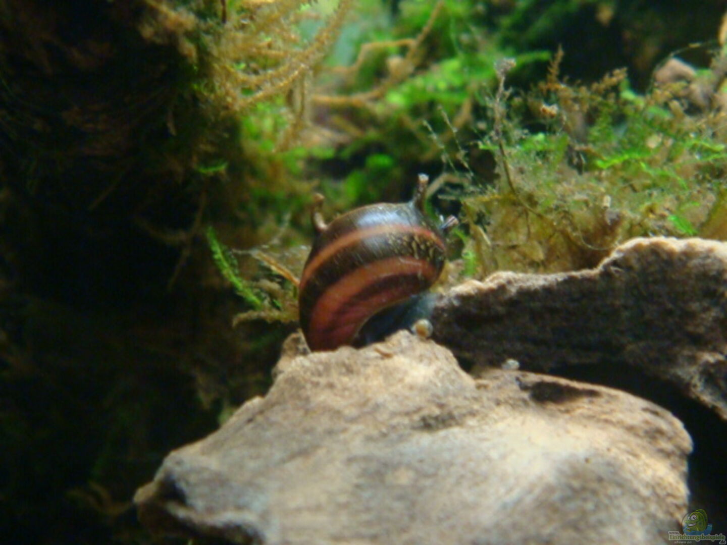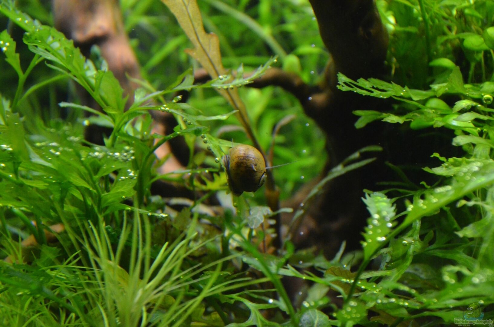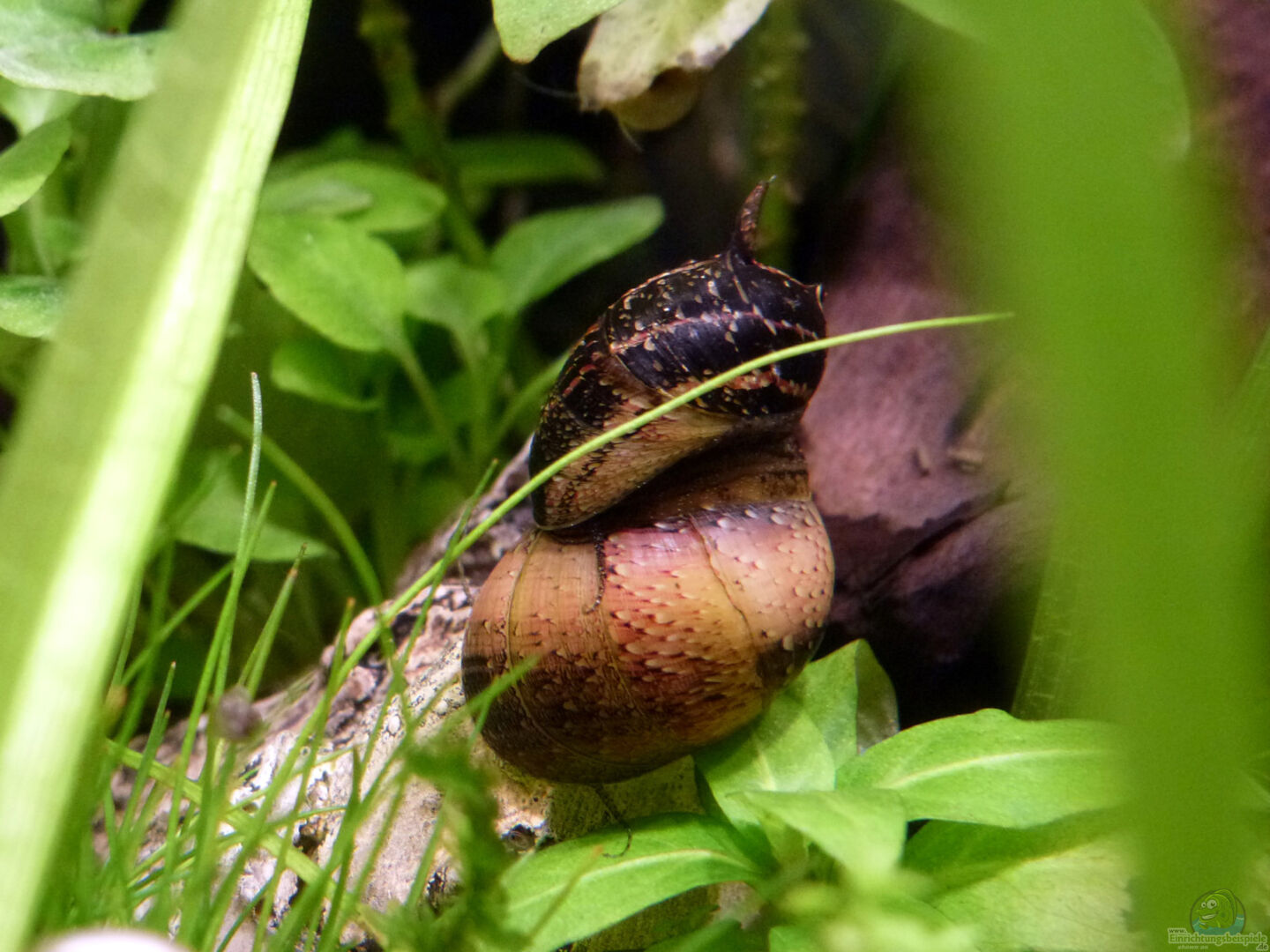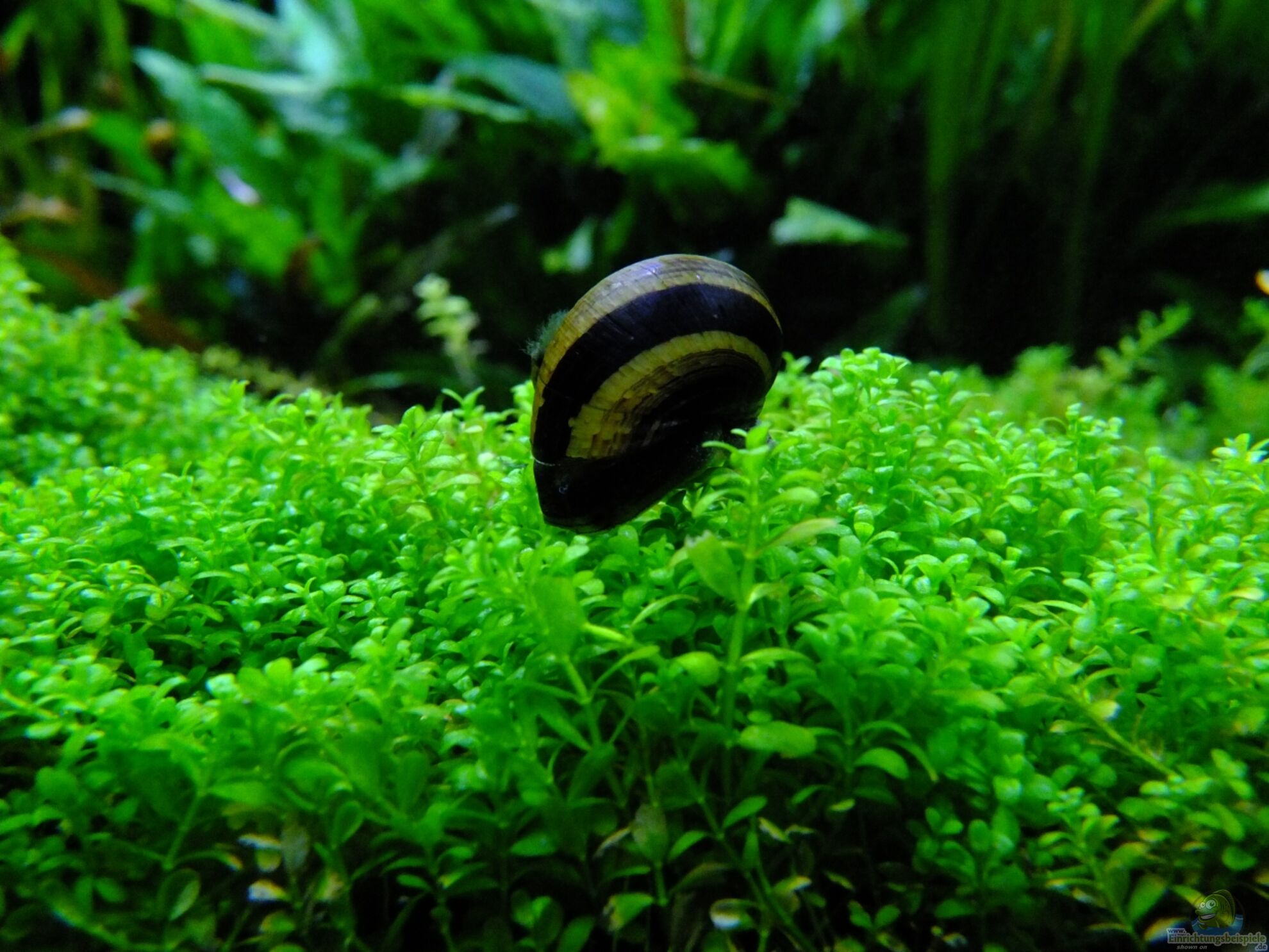 Clithon corona erreicht auch im Aquarium eine Endgröße von ca. 1.5 cm. Das Aquarium sollte eine Mindestgröße von etwa 20 Litern haben.