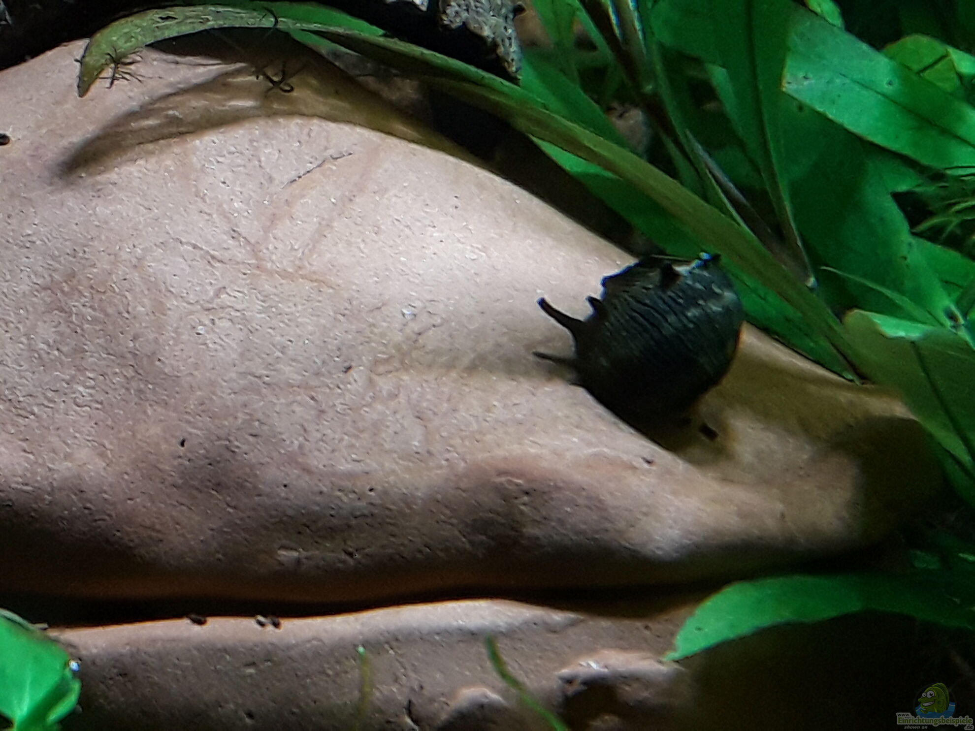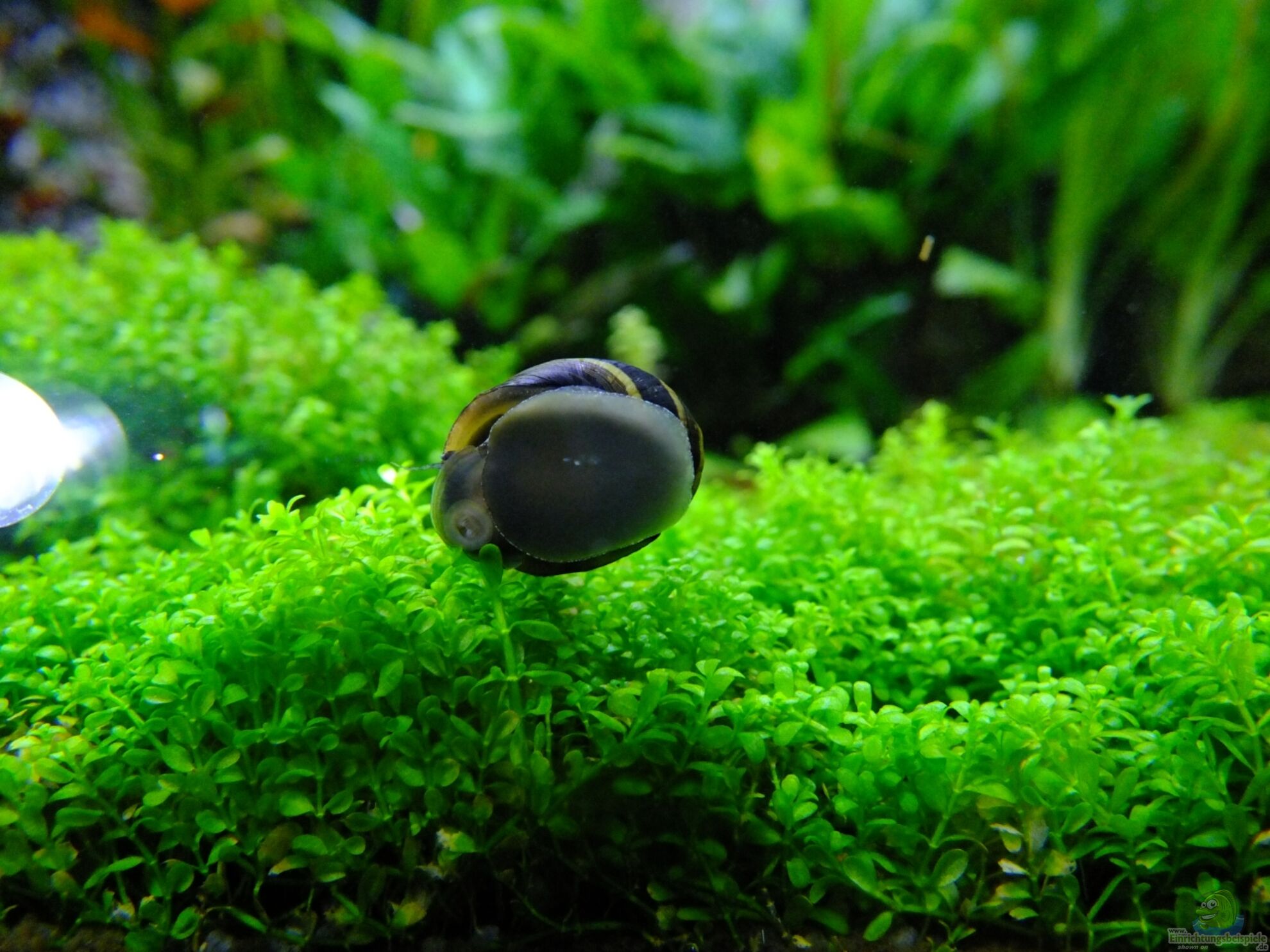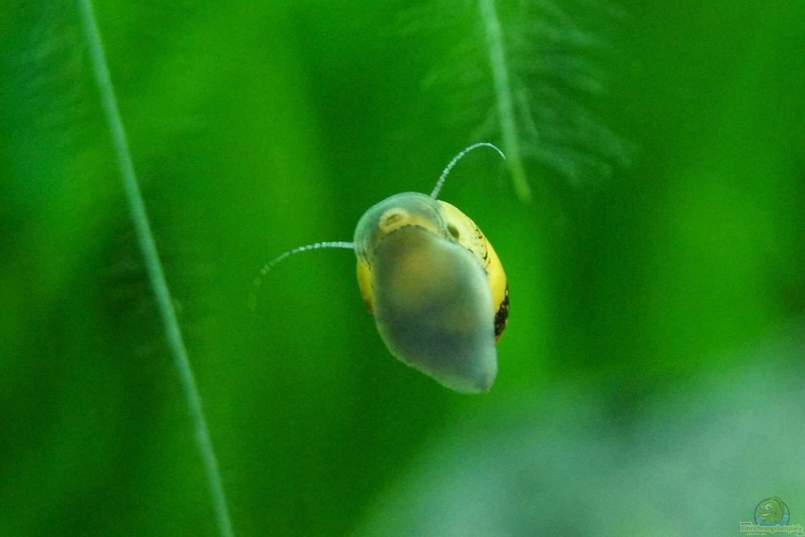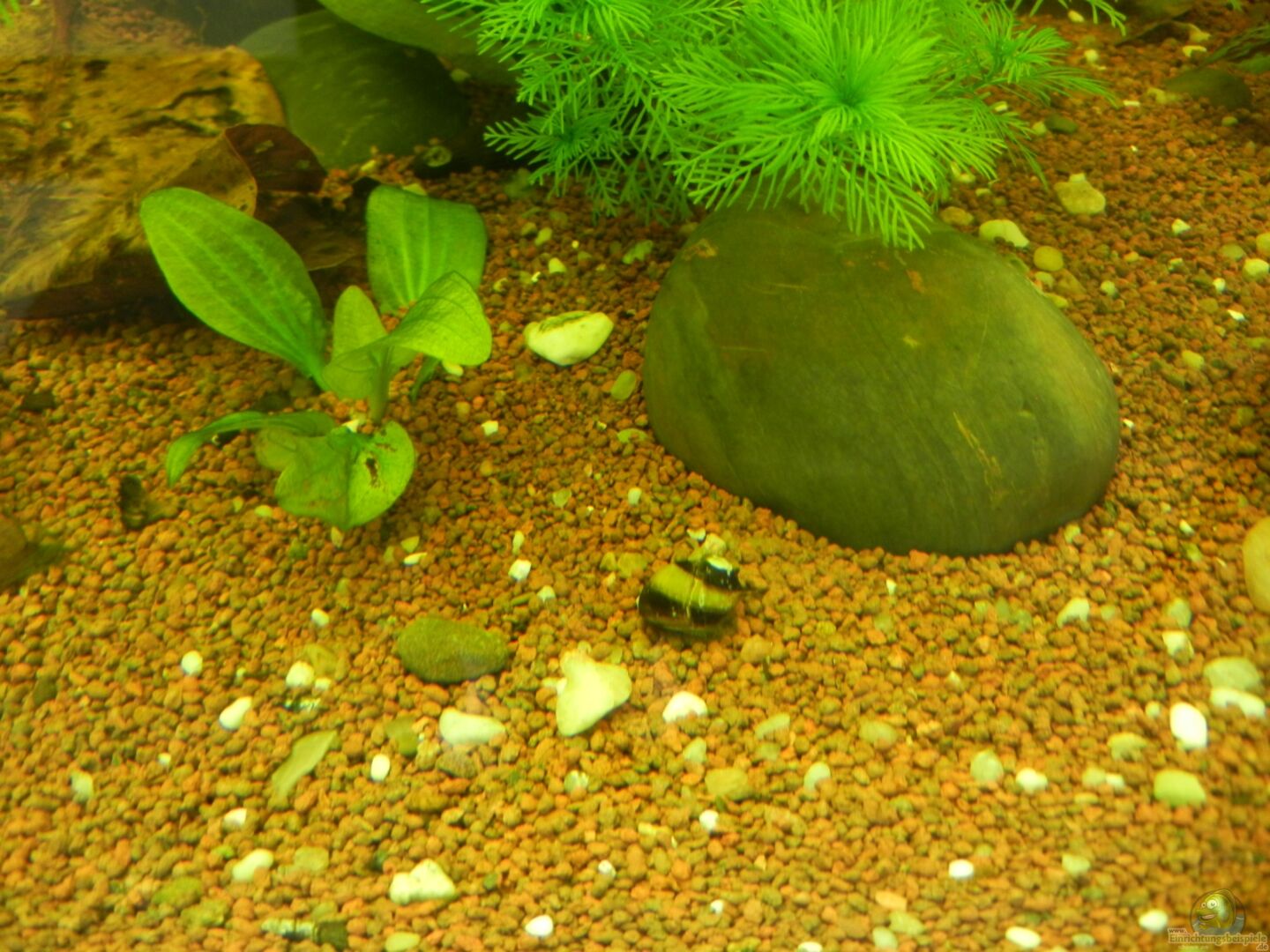 Clithon corona erreicht auch im Aquarium eine Endgröße von ca. 1.5 cm. Das Aquarium sollte eine Mindestgröße von etwa 20 Litern haben.