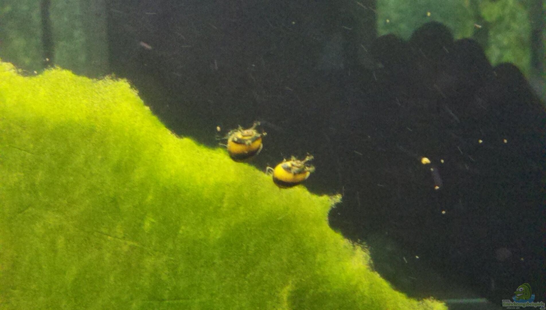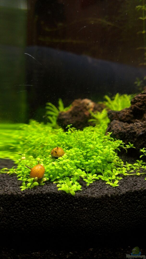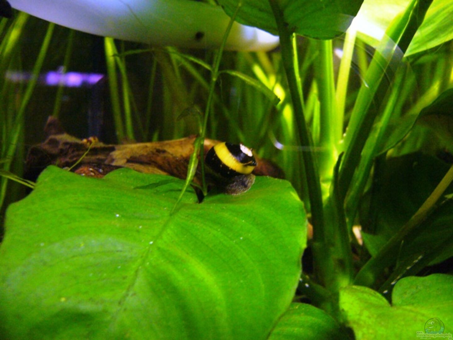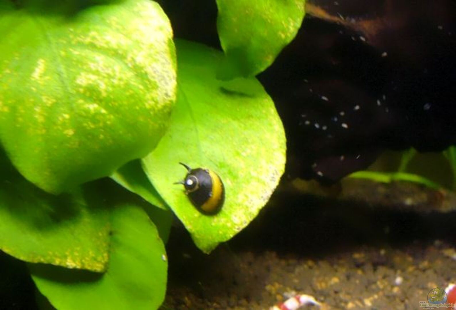 Clithon corona erreicht auch im Aquarium eine Endgröße von ca. 1.5 cm. Das Aquarium sollte eine Mindestgröße von etwa 20 Litern haben.