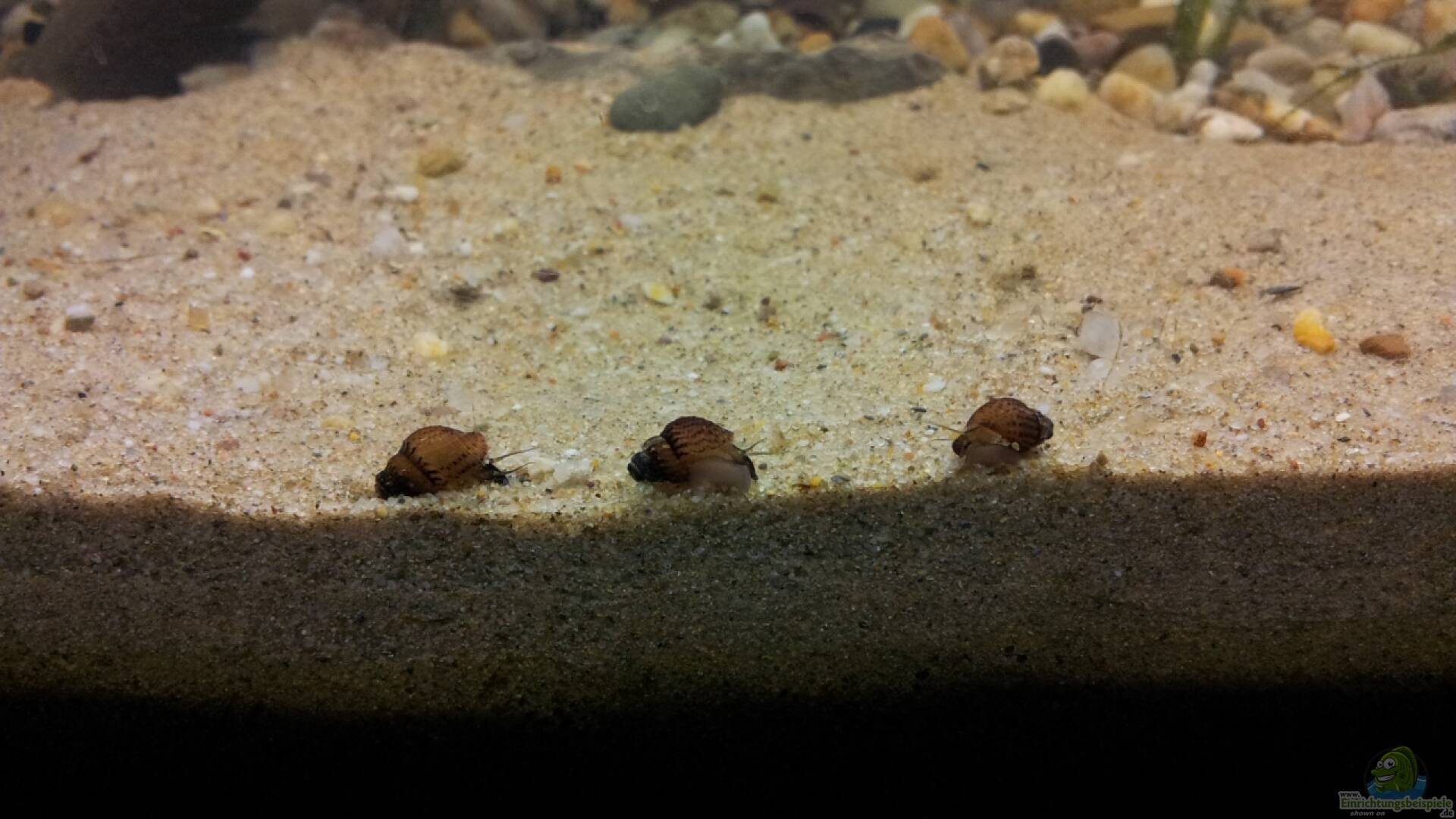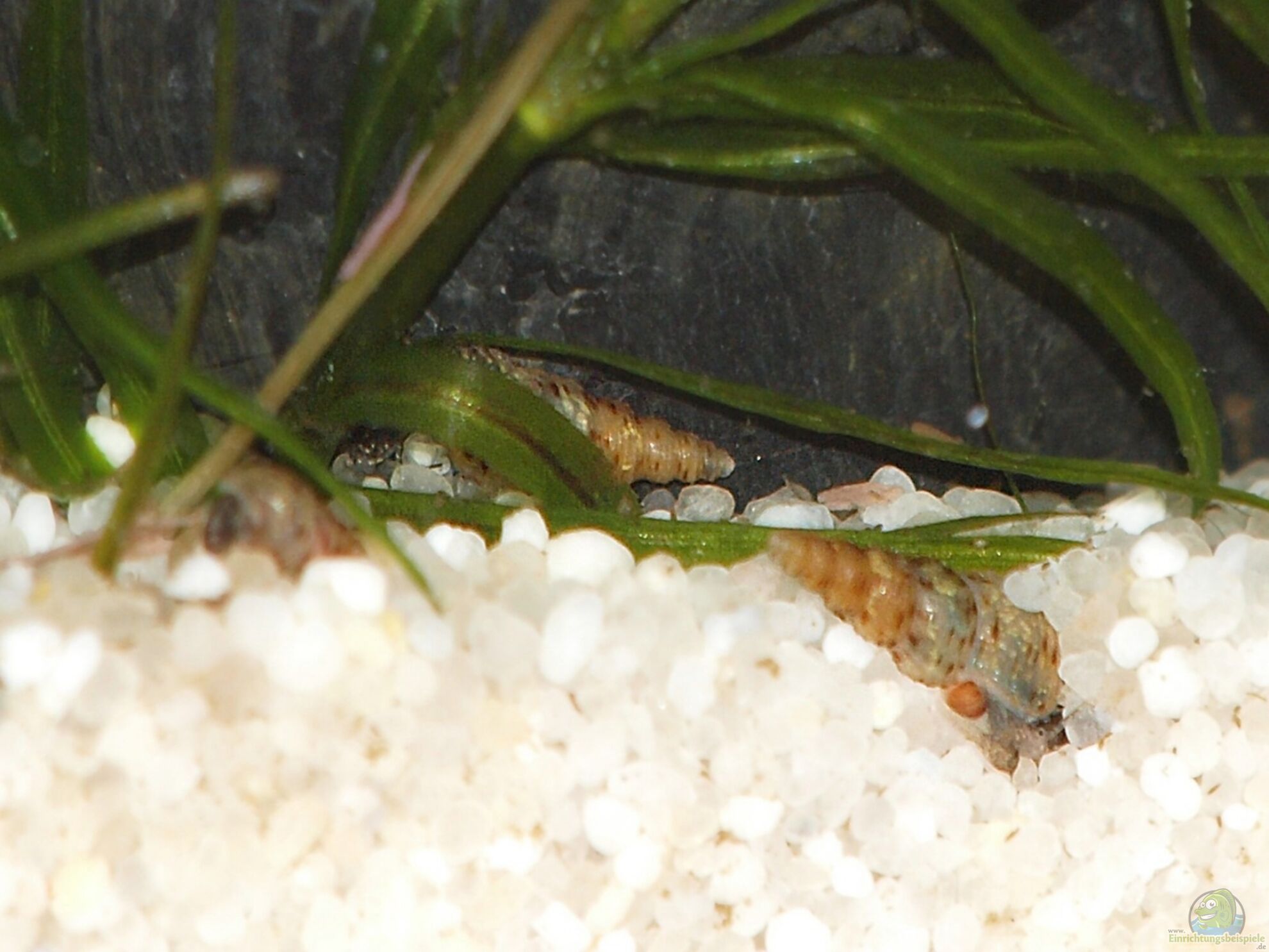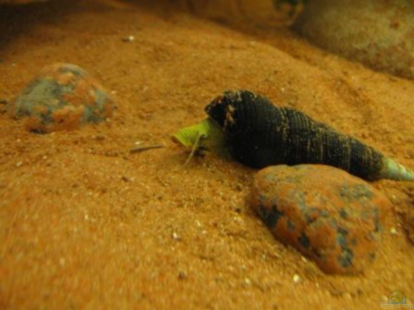 Das Aquarium für Melanoides tuberculata sollte am besten mit einer Sandschicht eingerichtet werden, in die sich die Schnecken tagsüber eingraben können. Melanoides tuberculata verlässt nur in der Dunkelheit die Sandschicht. Sollte sie trotzdem tagsüber in den Aquarienscheiben oder an Pflanzen in Richtung Wasseroberfläche kriechen, ist dies ein sicheres Zeichen dafür, dass etwas im Becken nicht stimmt. Durch das Eingraben von Melanoides tuberculata im Sand wir ein Verdichten oder Verklumpen des Bodengrunds verhindert.