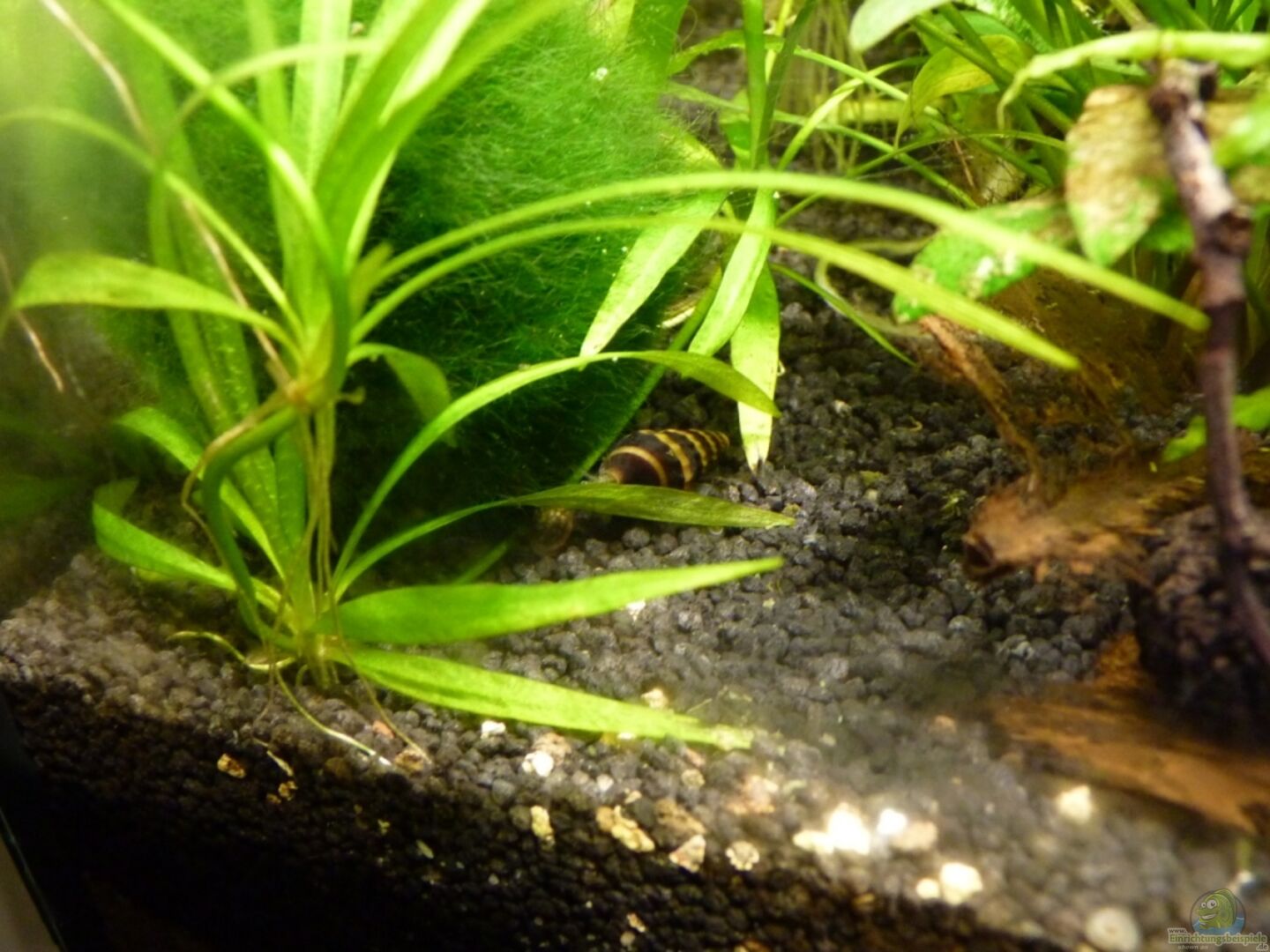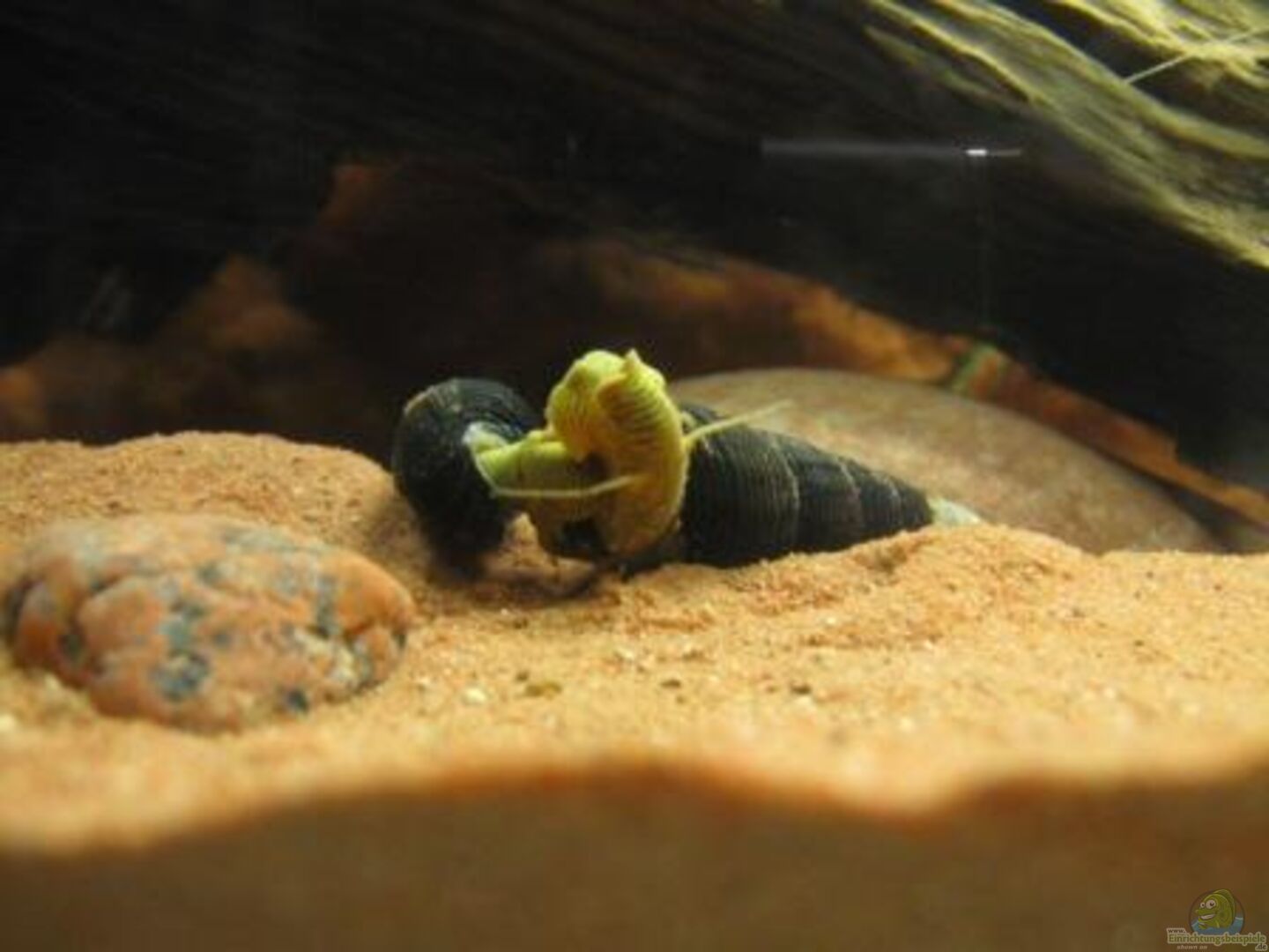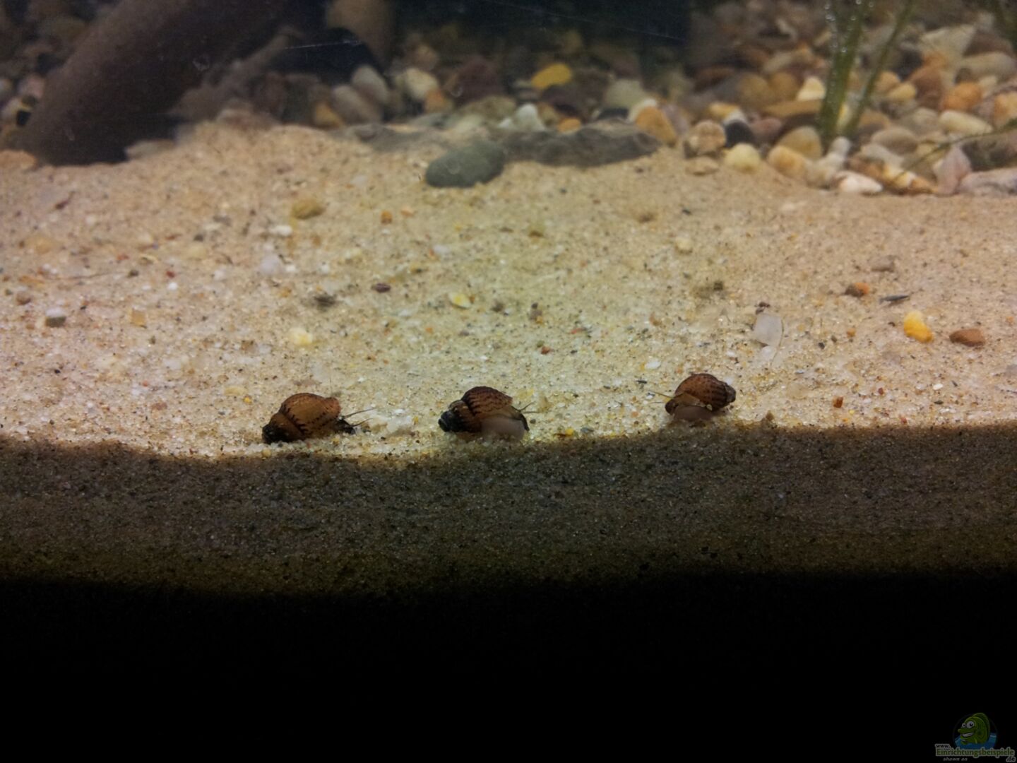 Das Aquarium für Melanoides tuberculata sollte am besten mit einer Sandschicht eingerichtet werden, in die sich die Schnecken tagsüber eingraben können. Melanoides tuberculata verlässt nur in der Dunkelheit die Sandschicht. Sollte sie trotzdem tagsüber in den Aquarienscheiben oder an Pflanzen in Richtung Wasseroberfläche kriechen, ist dies ein sicheres Zeichen dafür, dass etwas im Becken nicht stimmt. Durch das Eingraben von Melanoides tuberculata im Sand wir ein Verdichten oder Verklumpen des Bodengrunds verhindert.