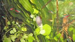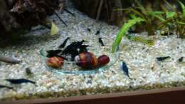 Eine Vergesellschaftung mit friedlichen Zierfischen oder anderen Wirbellosen ist problemlos möglich. Ausnahme bilden alle schneckenfressenden Fische wie Schmerlen oder größere Krebse.
