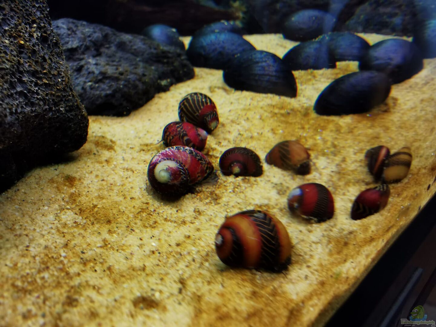 Das Becken sollte sehr gut abgedeckt werden, da Vittina waigiensis sonst gerne ausbrechen.
