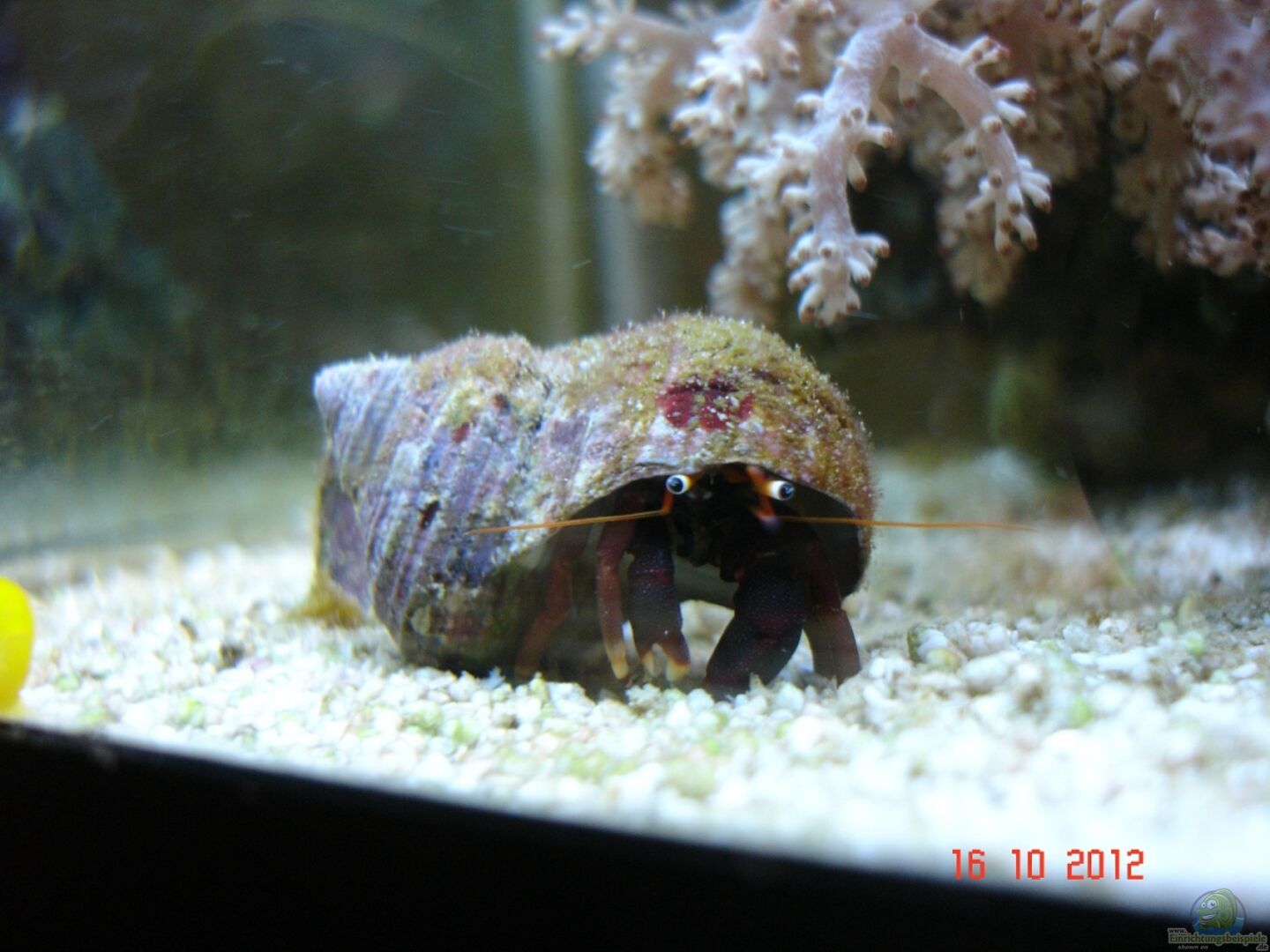 Calcinus latens (Einsiedlerkrebs) ist ein Krebs aus der Familie Diogenidae, die im Meerwasseraquarium gehalten wird. Ursprünglich ist Calcinus latens im Indopazifik, Persischer Golf, Rotes Meer zu finden.