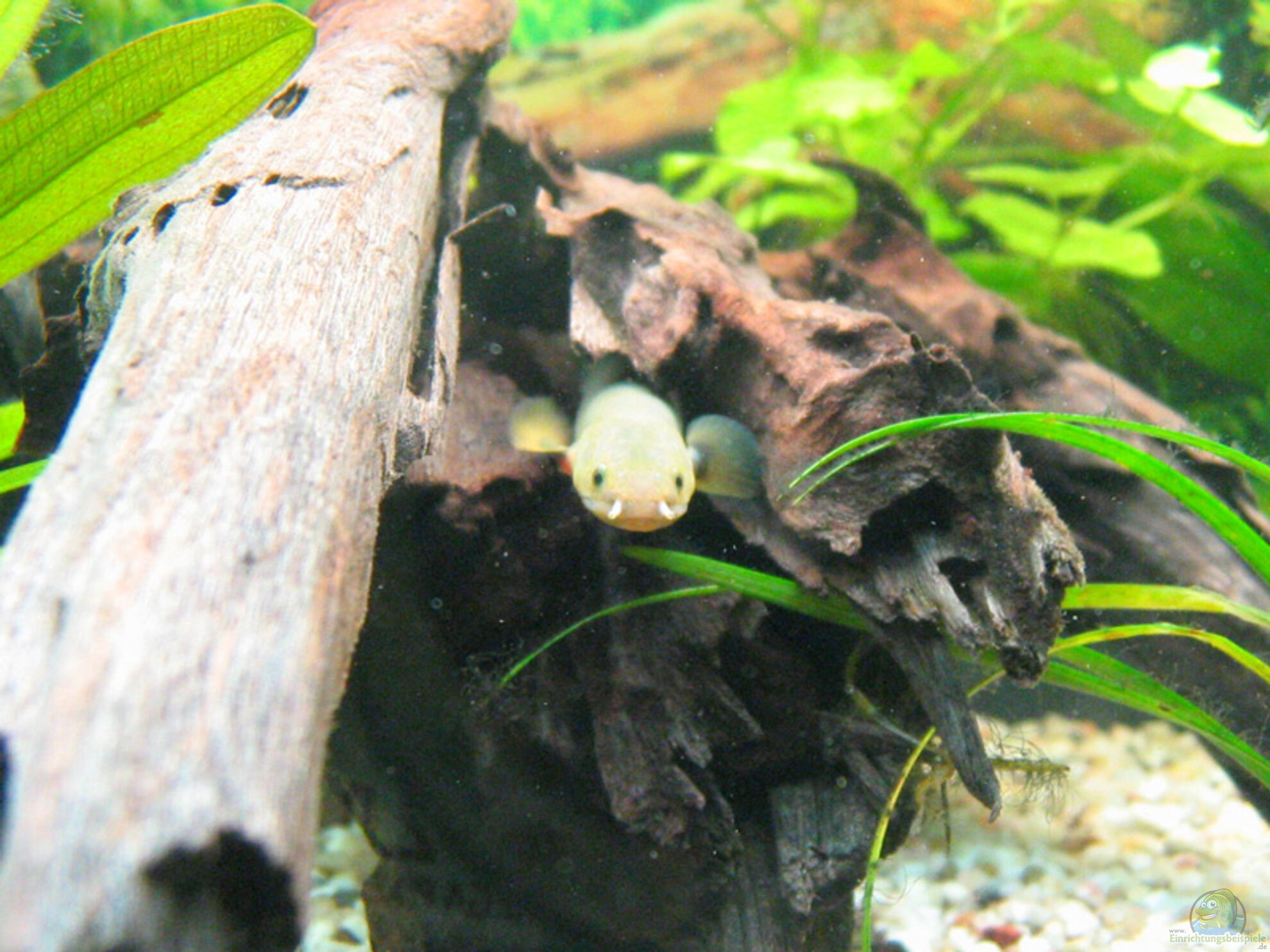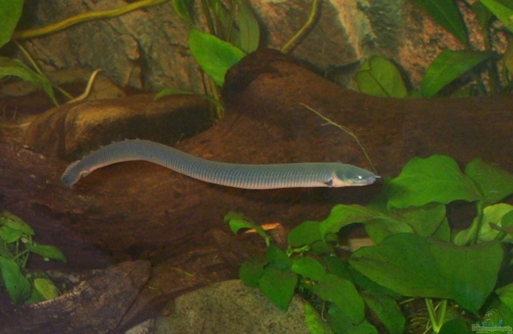 Das Aquarium für Erpetoichthys calabaricus sollte dicht bepflanzt und mit Wurzeln und Steinen so eingerichtet werden, dass viele Verstecke und Rückzugsmöglichkeiten entstehen.
