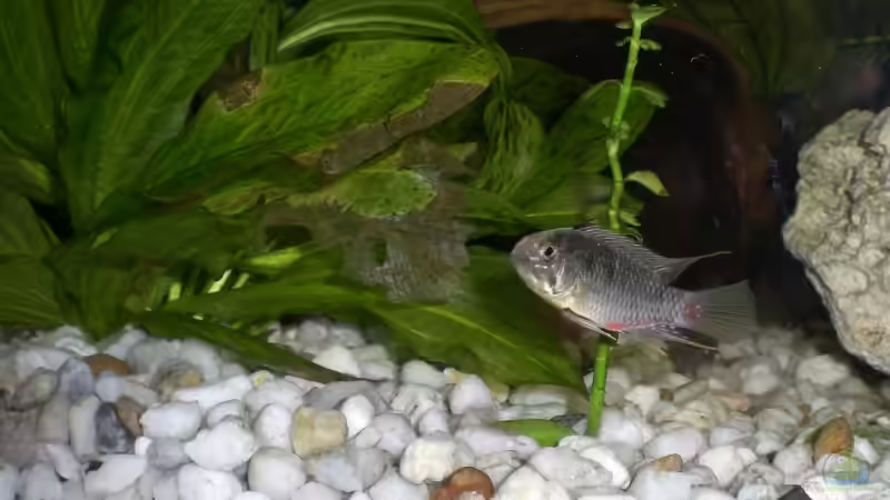 Hemichromis bimaculatus ist ein Buntbarsch, der gegenüber anderen Arten stark aggressiv und ist deshalb nicht für ein klassisches Gesellschaftsbecken geeignet.