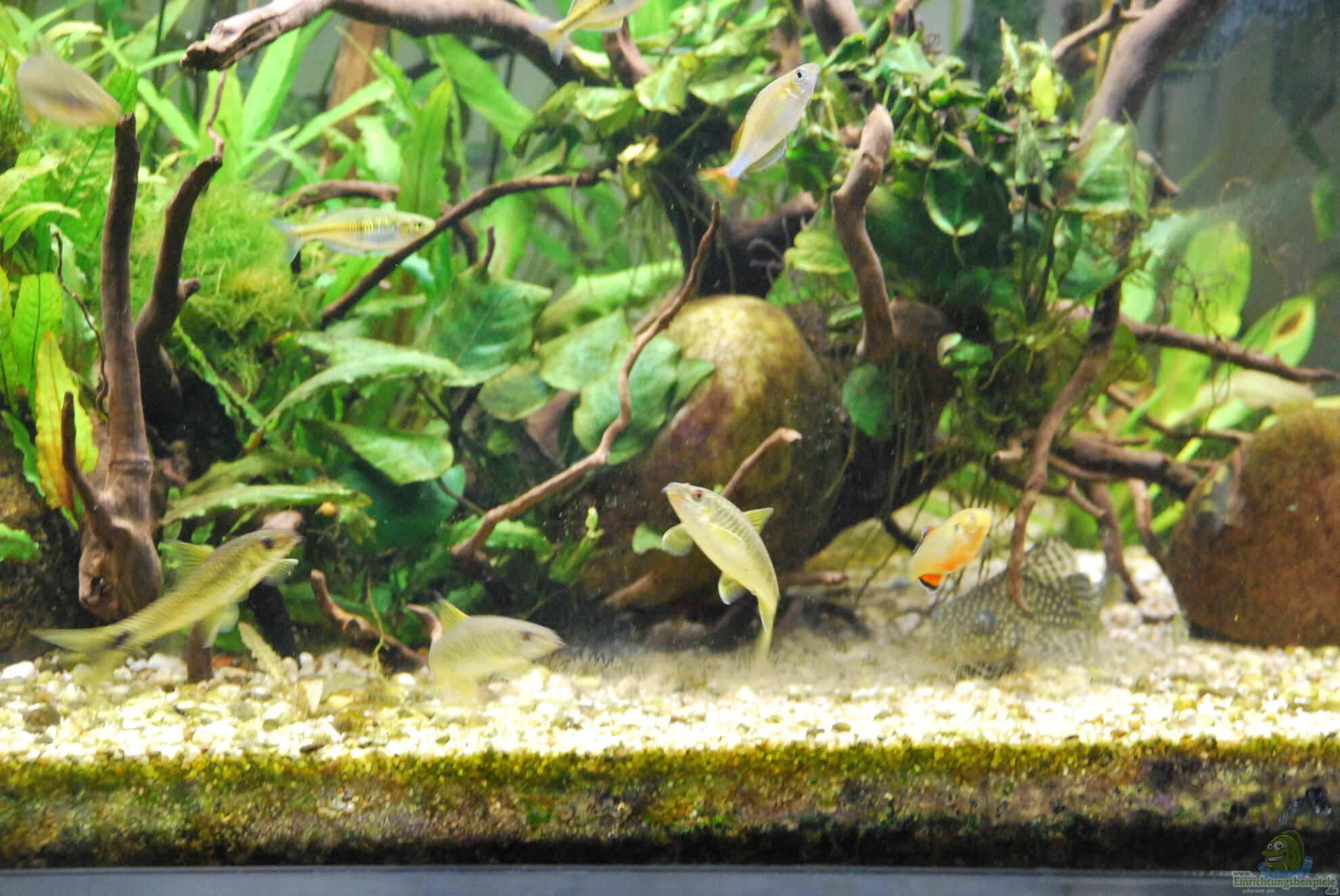 Das Aquarium kann mit bepflanzt werden. Wichtiger ist allerdings die Einrichtung mit Wurzeln, so dass viele Verstecke und Unterstände entstehen.