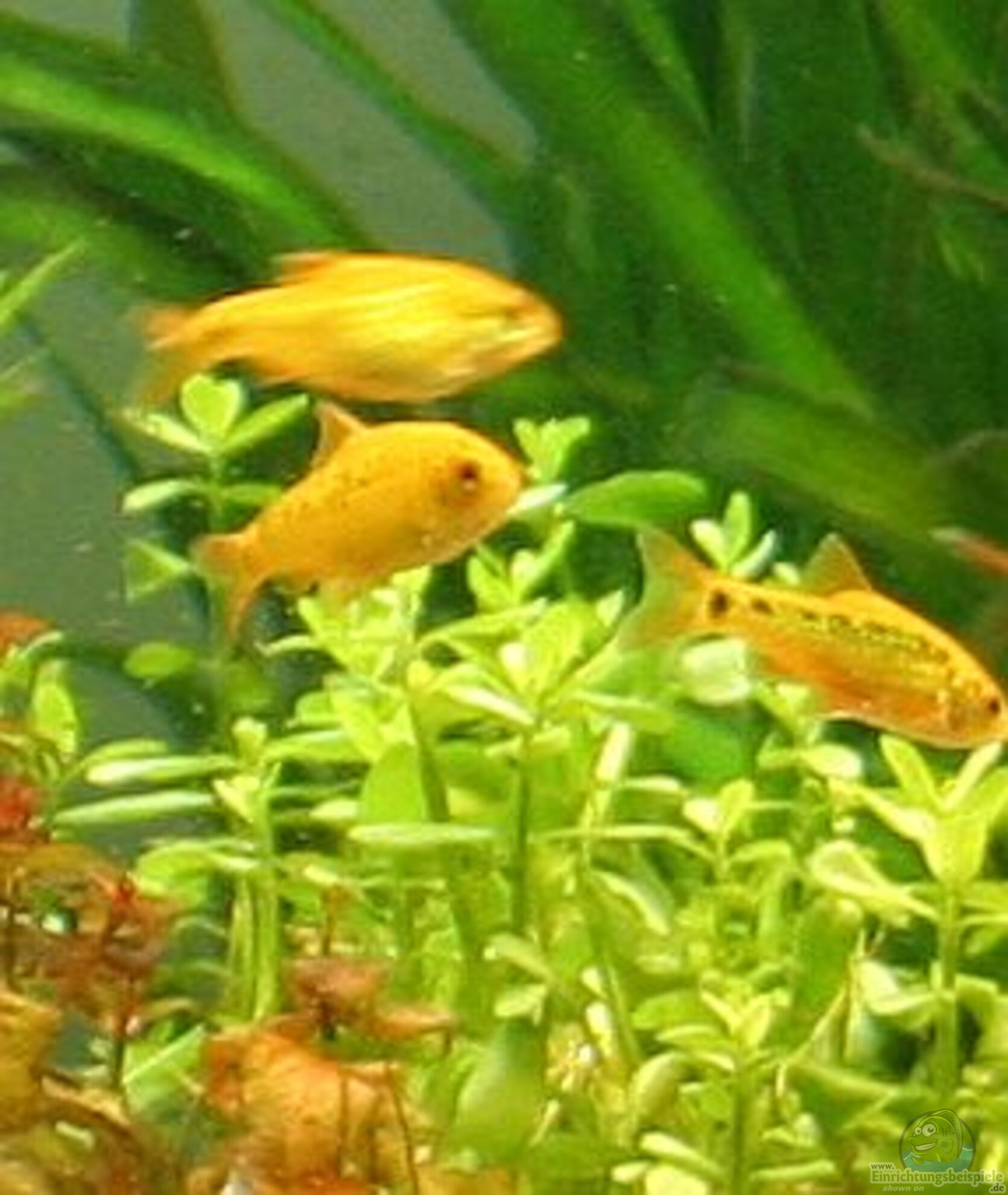 Die aus dem Süden Chinas stammenden Brokatbarbe oder auch Messingbarbe gehört zu den Barben und ist schon lange ein gerne gehaltener Aquariumfisch. Mit ihrer gelben Färbung sind sie ein beliebter Farbpunkt in Gesellschaftsaquarien Der Schwarmfisch sollte in Gruppen ab 10 Tieren gehalten werden. Für die sehr aktiven Schwimmer sollte das Aquarium ausreichen groß sein und mindestens 100 Liter fassen. Damit sich die Tiere wohl fühlen sollte der Boden möglichst aus Sand bestehen, da die Barben sehr gerne gründeln.