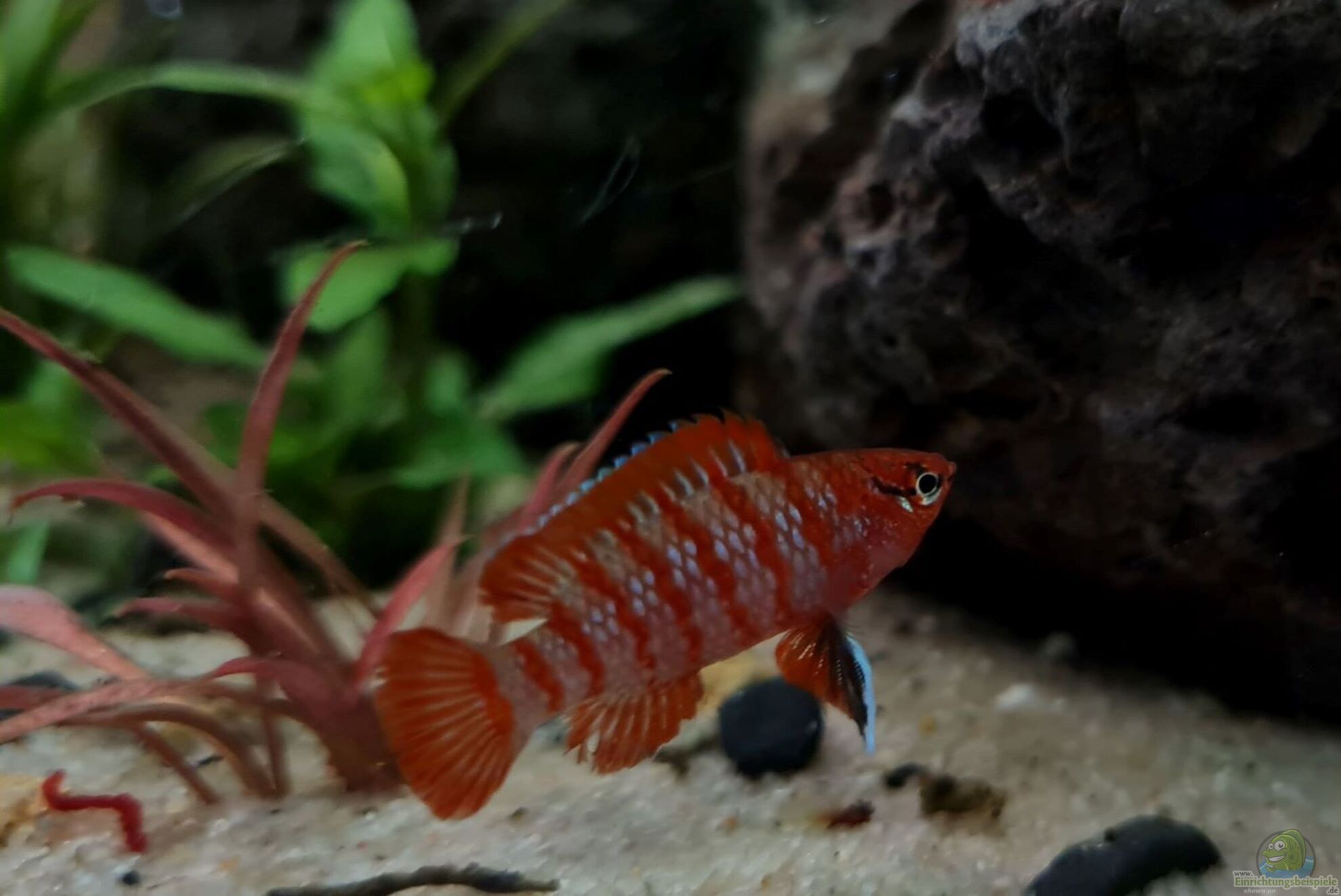 Dario dario (Scarlet-Blaubarsch) wird im Aquarium etwas größer als in der freien Natur. Die Endgröße bleibt aber trotzdem unter 2 cm. Damit ist er für kleine Becken ab 40 Litern Volumen geeignet.