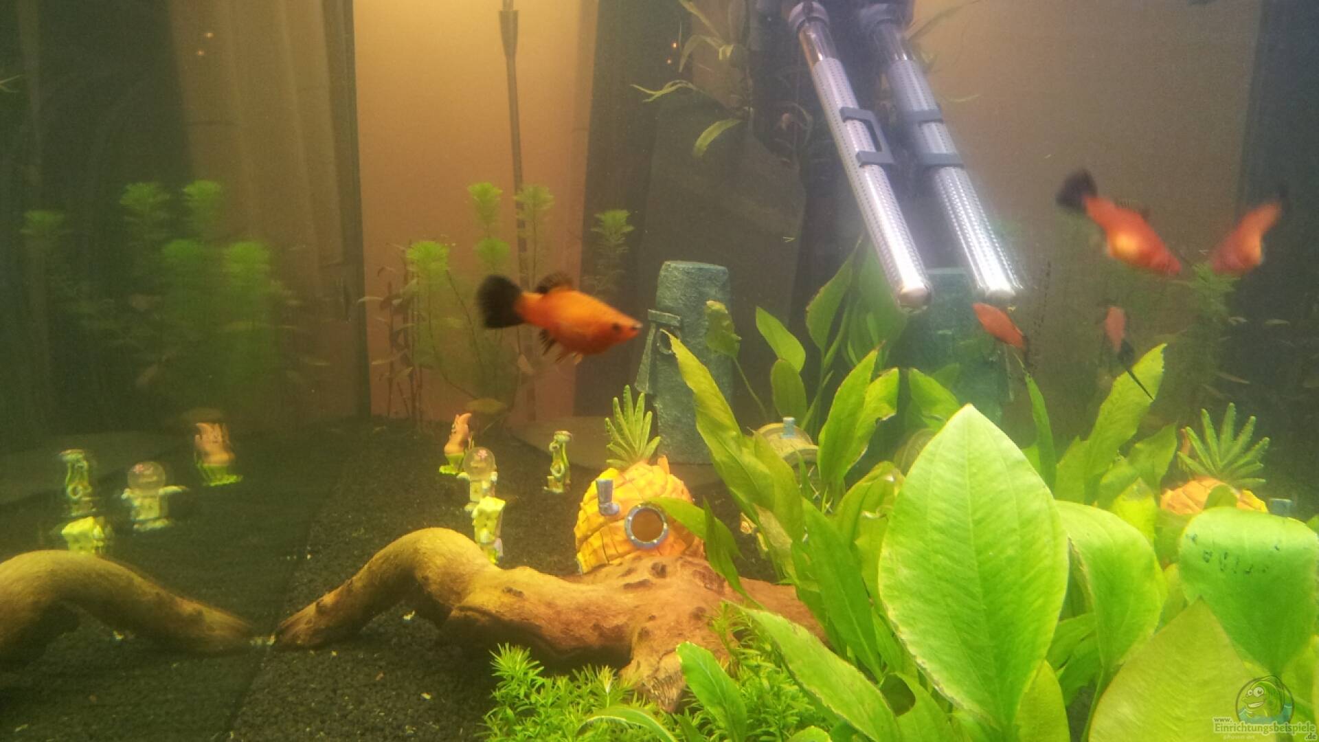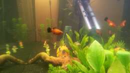 Die Einrichtung ist meist von eine üppigen Bepflanzung dominiert. Oft werden zusätzlich zu einer dichten Hintergrundbepflanzung auch noch Schwimmpflanzen eingesetzt, die das Habitat abdunkeln.