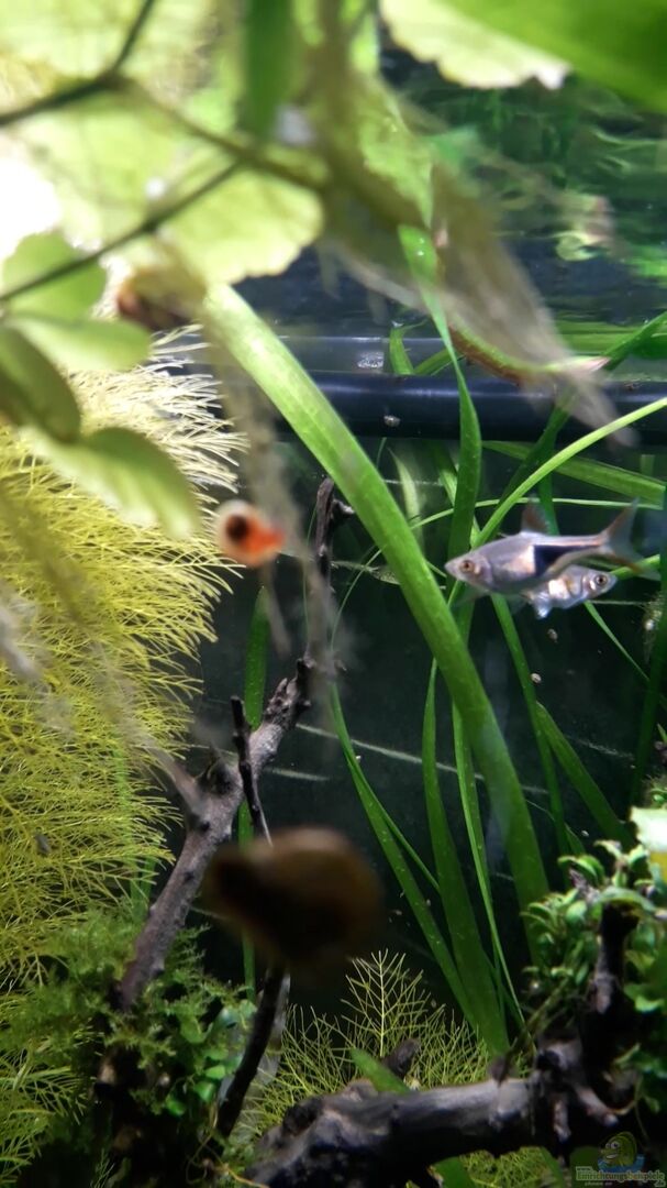 Besonders spannend ist die Zucht. Sie unterscheidet sich deutlich von vielen anderen Cypriniden. Trigonostigma heteromorpha ist ein typischer Haftlaicher. Das Weibchen klebt die Eier an die Unterseiten breiter Pflanzenblätter, meist von Cryptocorynen oder großen Anubias-Blättern. Dazu dreht sich das Paar gemeinsam unter das Blatt und legt dort in charakteristischer Position die Eier ab. Für eine erfolgreiche Zucht braucht man weiches, leicht saures Wasser, idealerweise um pH 5,5 bis 6,5 und eine Temperatur zwischen 26 und 28 Grad. Ein separates Zuchtbecken ist meist sinnvoll, weil die Elterntiere zwar nicht massiv laichräuberisch sind, aber dennoch Eier oder frisch geschlüpfte Larven fressen können. Die Aufzucht gelingt am besten mit Infusorien und später Artemia-Nauplien. Die Jungtiere sind anfangs sehr empfindlich gegenüber Wasserwechseln und benötigen stabile Werte ohne große Schwankungen.
