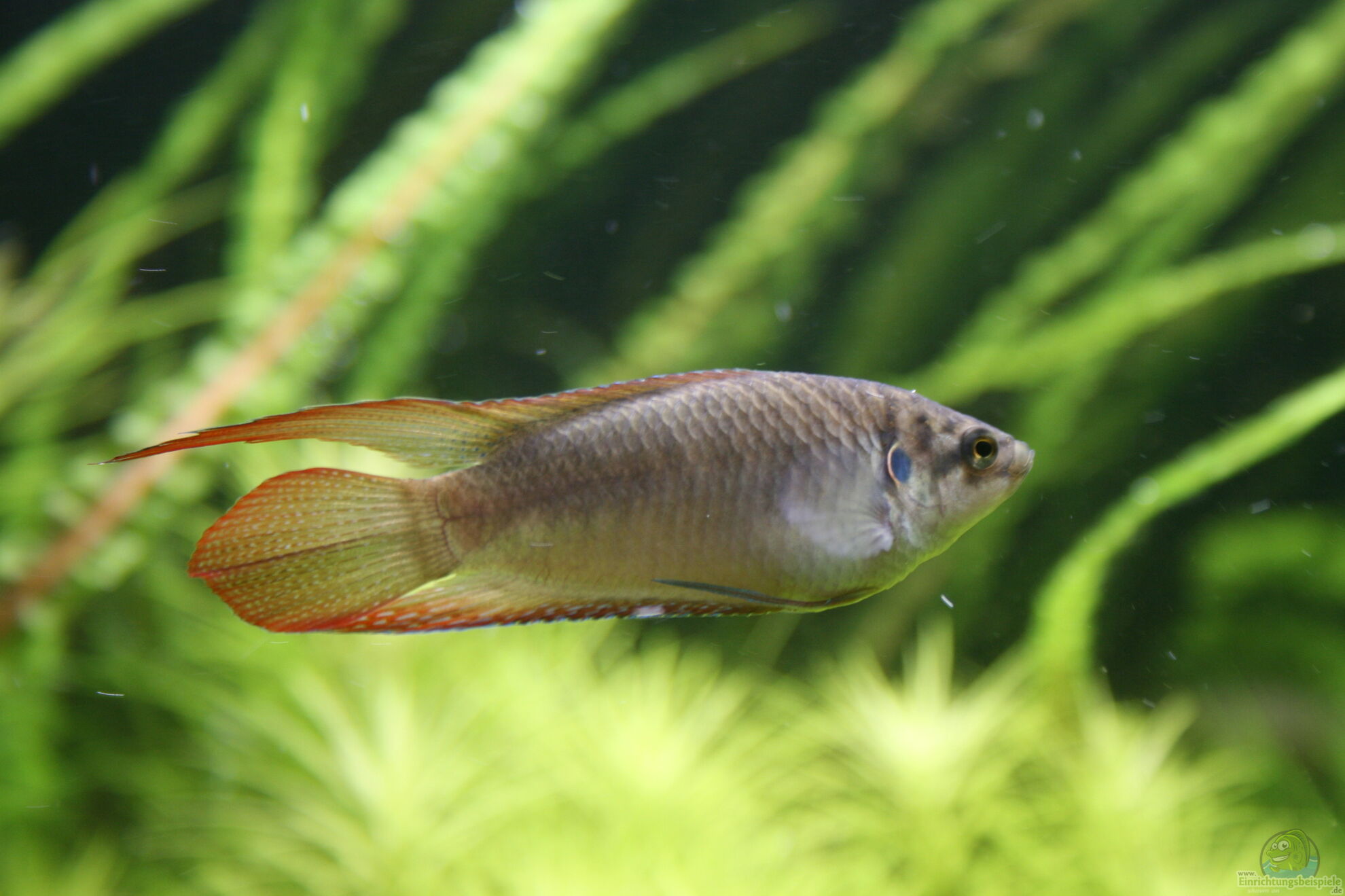 Das Aquarium für den bis zu 7,5 cm großen Fisch sollte mindestens 120 Liter fassen, um ein Paar oder einen Harem zu halten.