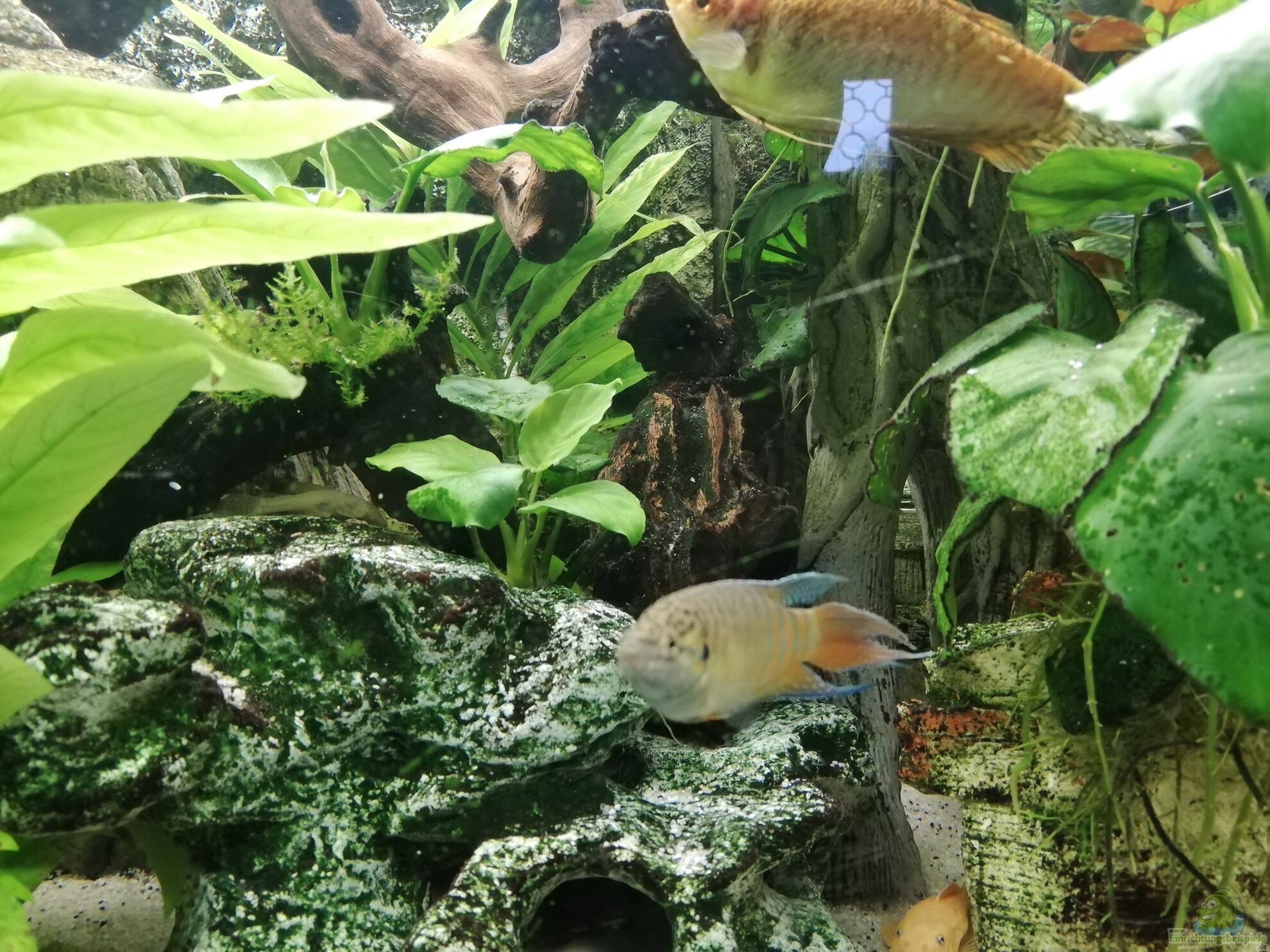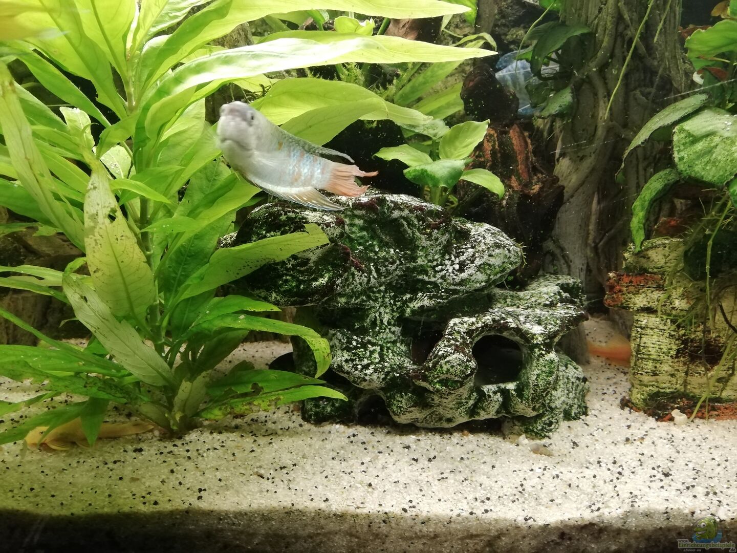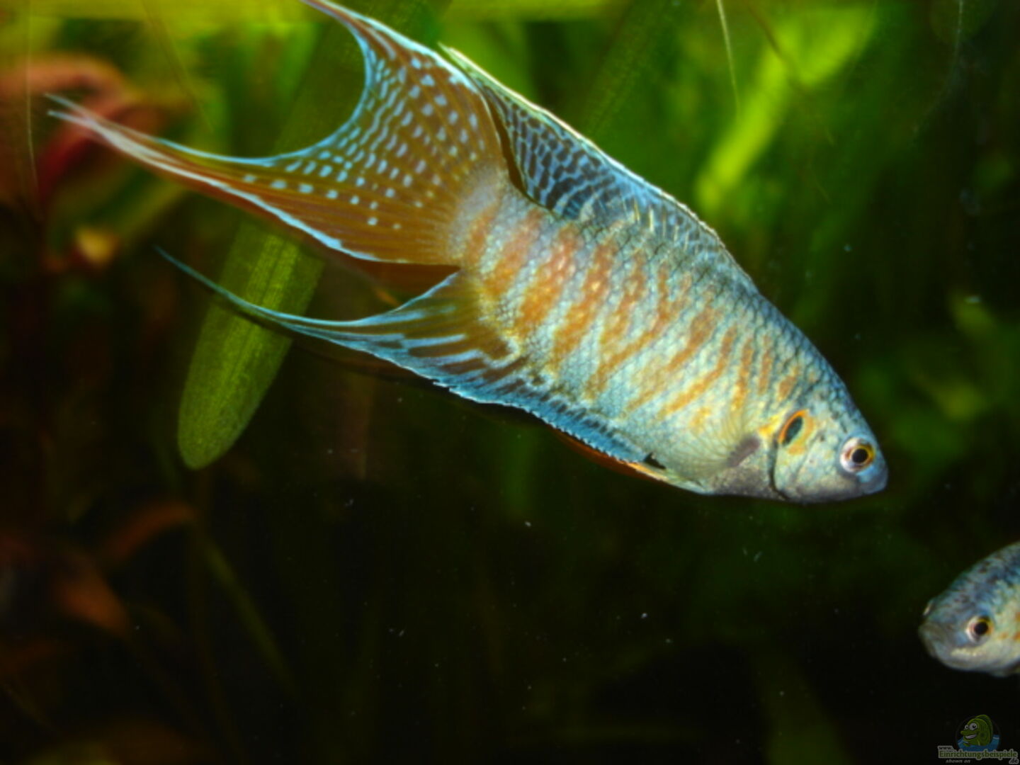Macropodus opercularis (Paradiesfisch) ist ein Labyrithfisch, der ursprünglich aus Ostasien Macropoden gelten als sehr robust und können auch mit ihrem Labyrithorgan atmosphärische Luft atmen. Sie sind allerdings auch etwas ruppig, so dass sie nicht mit zu empfindlichen Arten vergesellschaftet werden sollten.