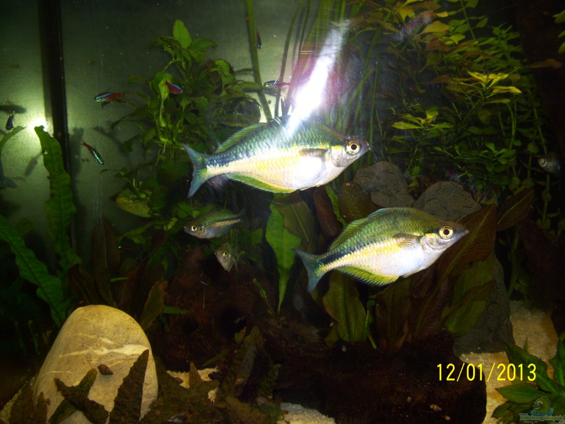 Das Aquarium für Melanotaenia lacustris sollte so bepflanzt werden, dass neben einer dichten Randbepflanzung möglichst viel freier Schwimmraum für die agilen Fische übrig bleibt.