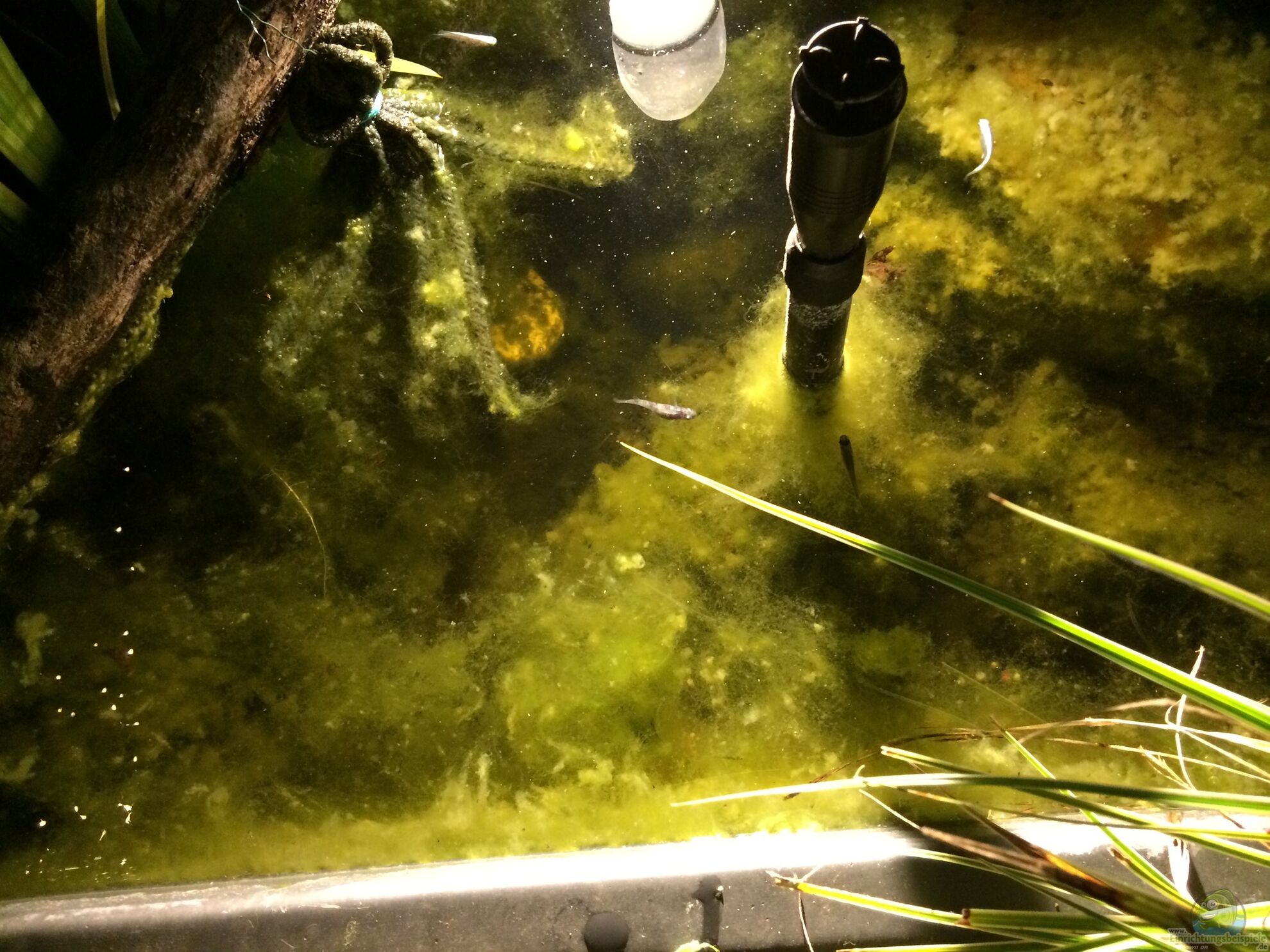 Wenn die Elterntiere ausreichend ernährt werden, stellen sie dem Nachwuchs nicht nach. Diese können also ohne Ablaich- oder Aufzuchtbecken nachgezogen werden.