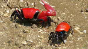 Die Landzone sollte mit Mangroven und Steinen so gestaltet werden, dass Revierabgrenzungen entstehen.