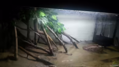 Die Landzone sollte mit Mangroven und Steinen so gestaltet werden, dass Revierabgrenzungen entstehen.