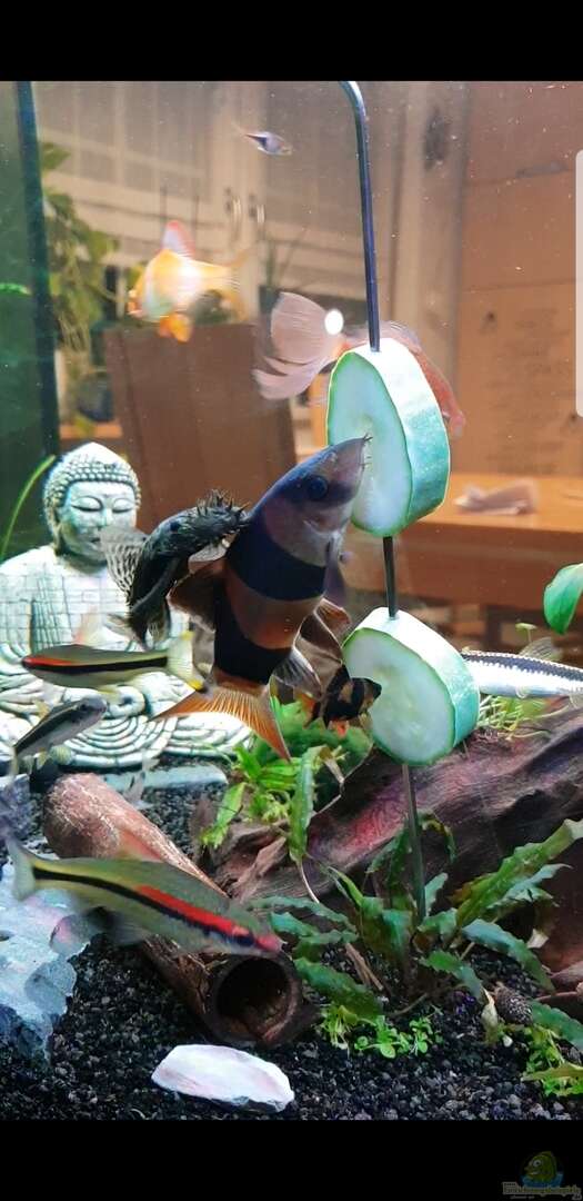- Ergänzung durch Lebend- und Frostfutter: Mückenlarven, Artemia, Daphnien