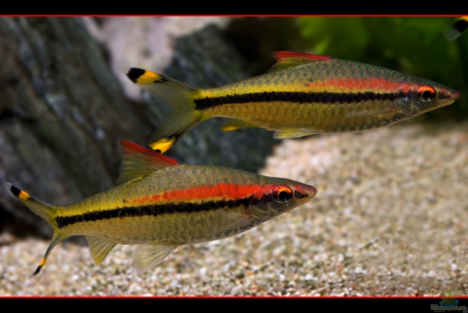 Für die lebhaften Fische ist ein ausreichend großes Aquarium von mindestens 180 cm Länge und einem Volumen ab 450 Liter notwendig. Als geselliger Schwarmfisch kann die Denisonbarbe im Gesellschaftsaquarium Die Rotstreifenbarbe wird bis zu 15 cm groß und sollte in einem Aquarium mit guter Strömung gehalten werden, das zwar gut bepflanzt ist, aber ausreichend freien Schwimmraum bieten sollte.