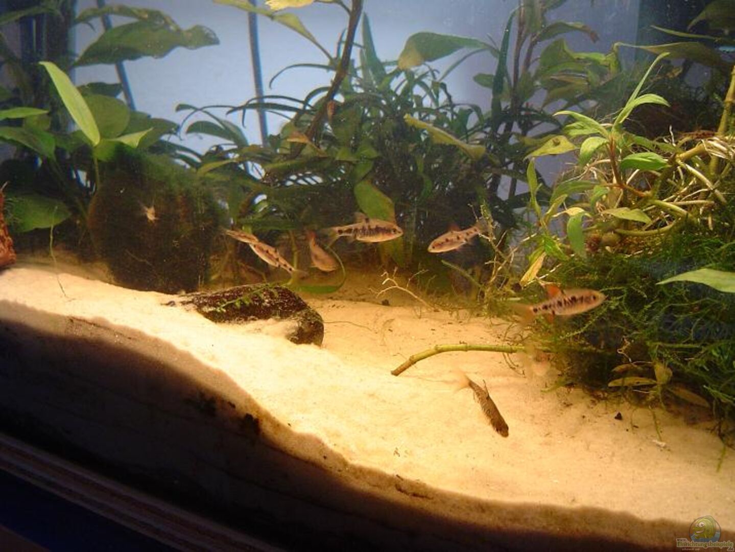 Die Einrichtung des Aquariums sollte mit einer dichten Hintergrundbepflanzung erfolgen, die ausreichend freien Schwimmraum im Vordergrund lässt.