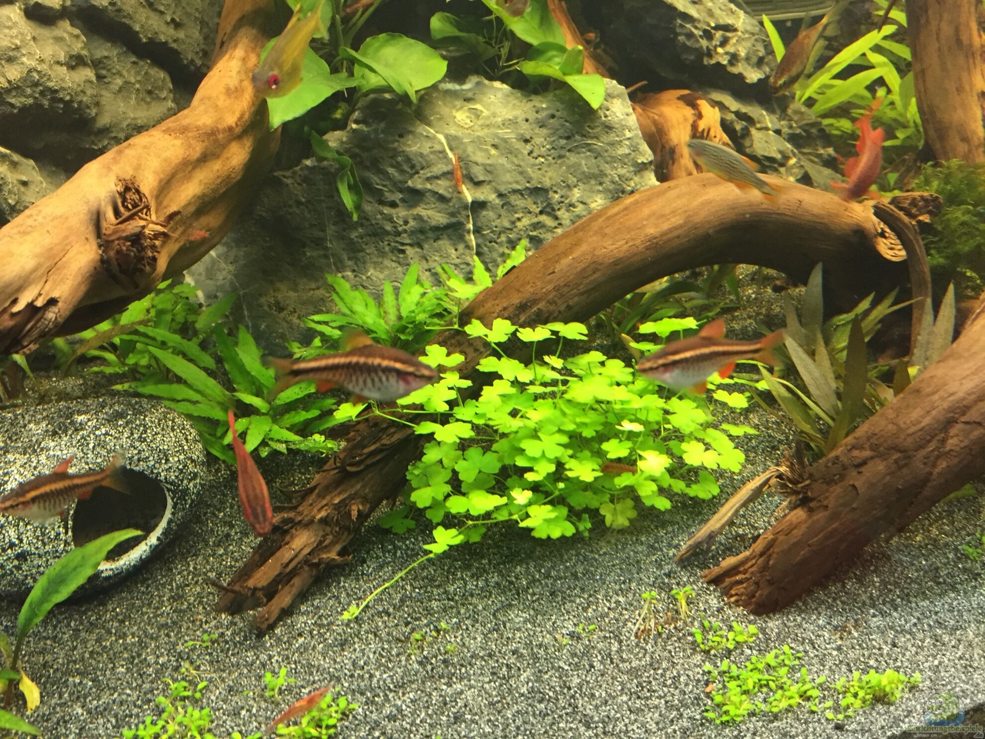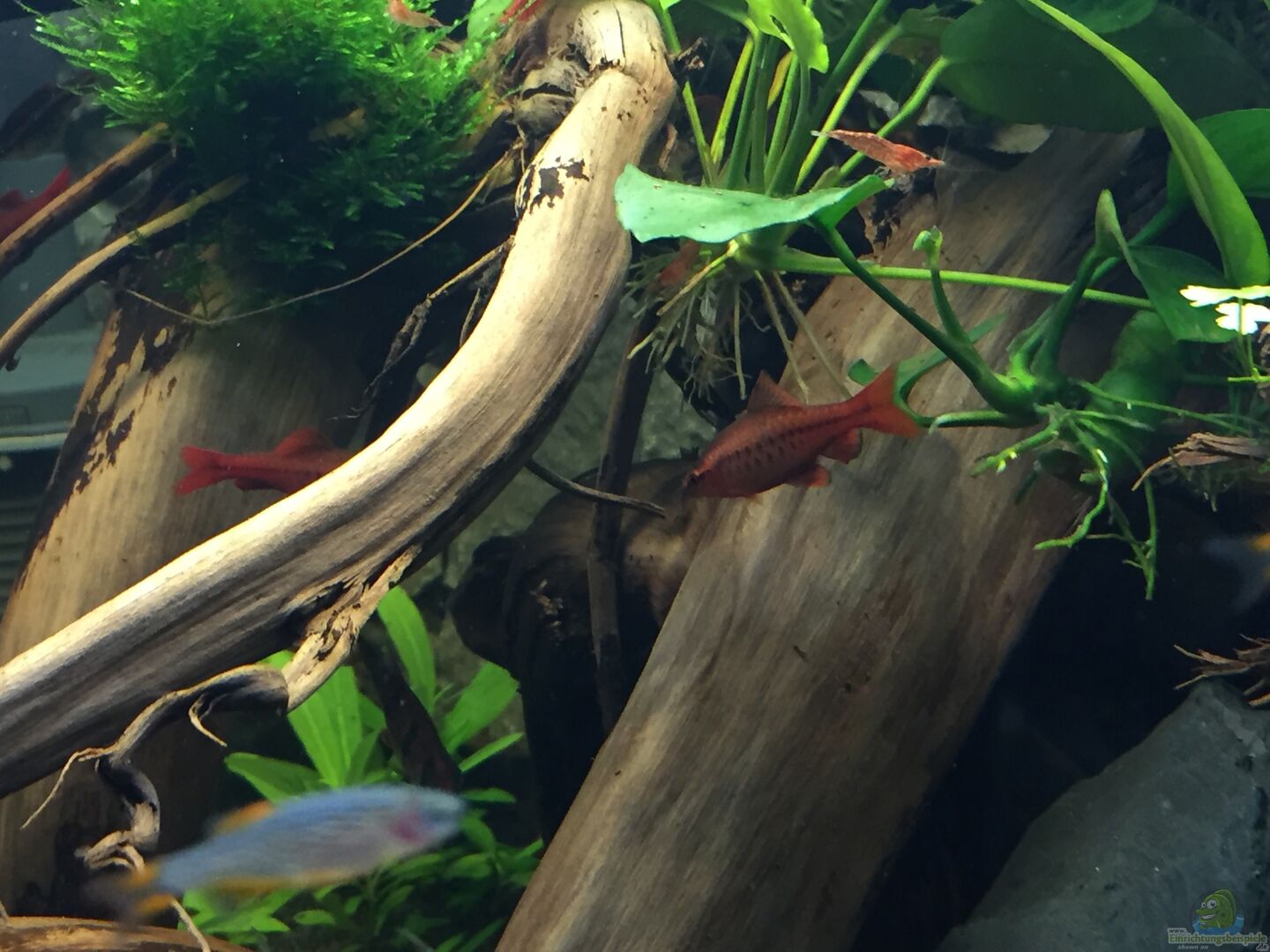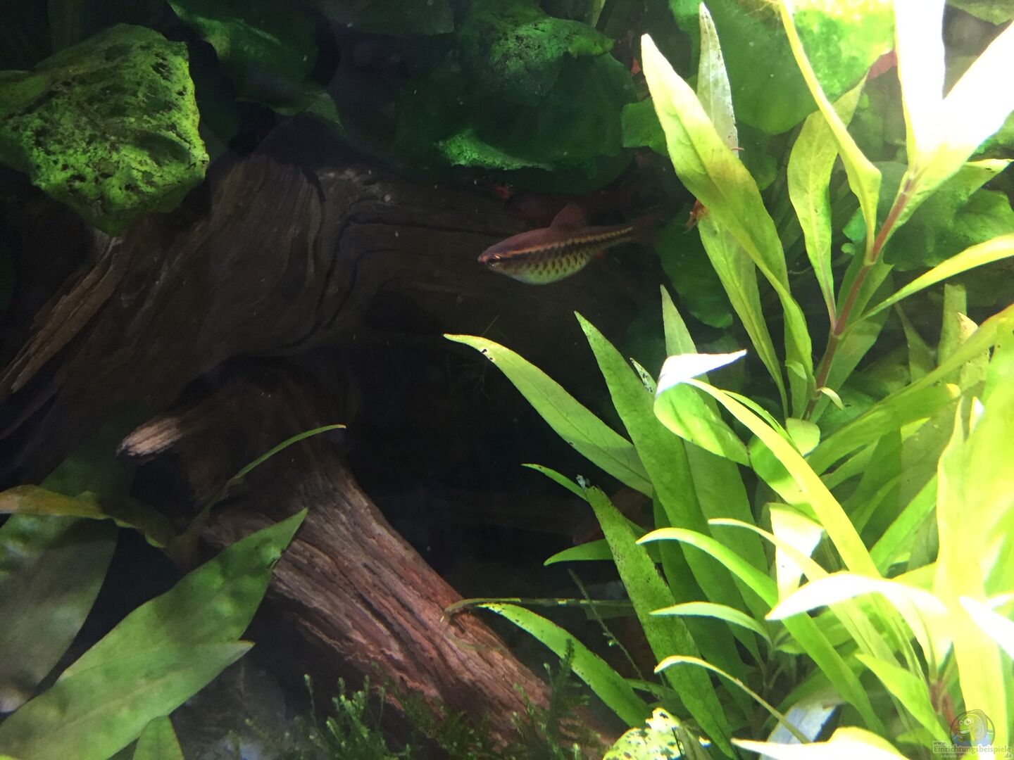 Das Aquarium für Puntius titteya sollte mindestens 112 Liter Volumen und eine Kantenlänge von mindestens 80 cm haben und mit Pflanzen dicht bepflanzt werden.