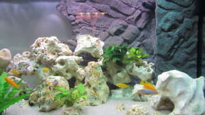 Geeignet mit kleinen, friedlichen Fischen wie Neonsalmlern, Guppys, Panzerwelsen oder Garnelen. Keine Haltung mit aggressiven oder stark territorialen Arten.