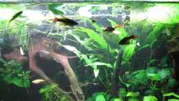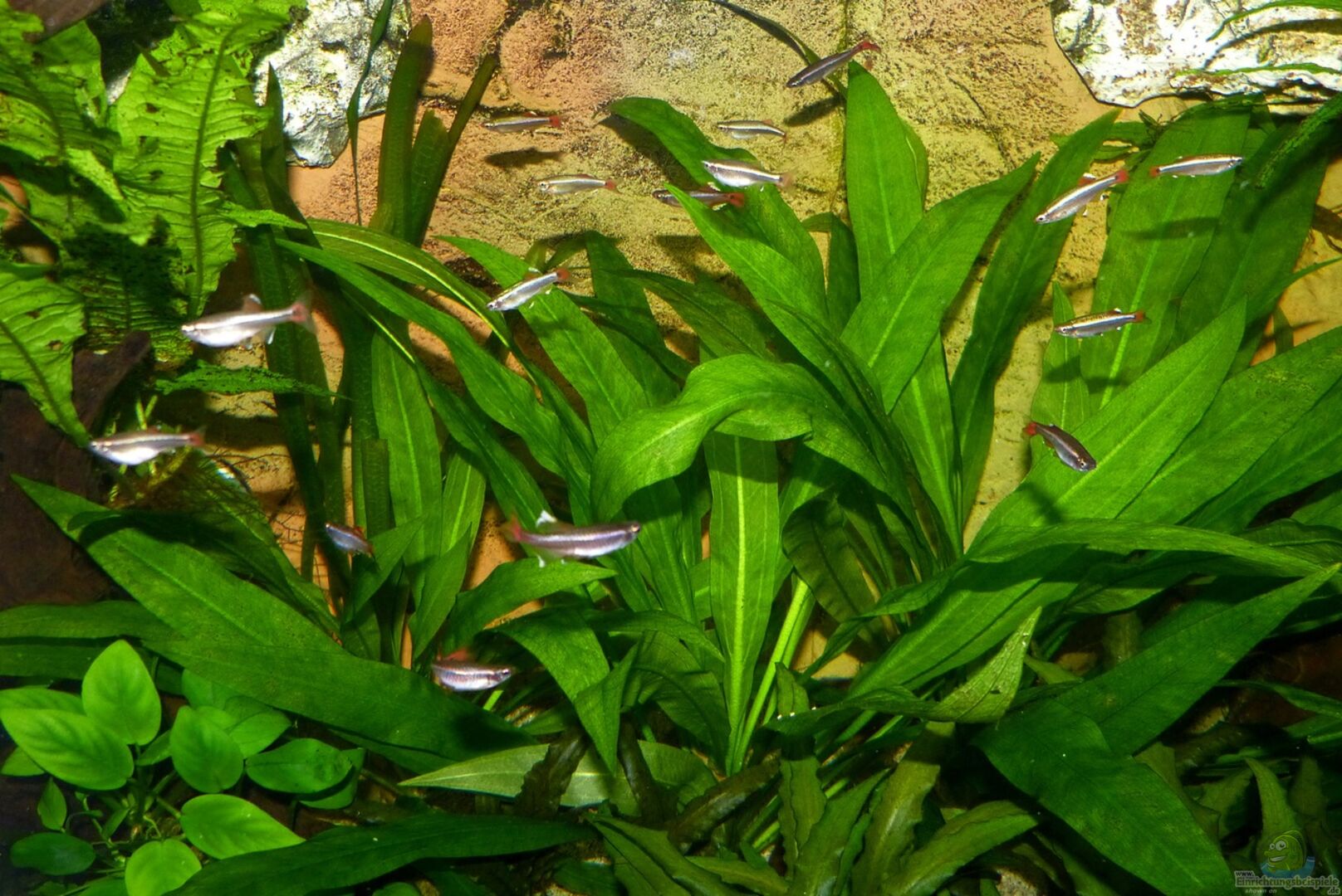 Guppys, Endler, Zwergpanzerwelse, kleinere Salmler oder Garnelen sind gute Mitbewohner.