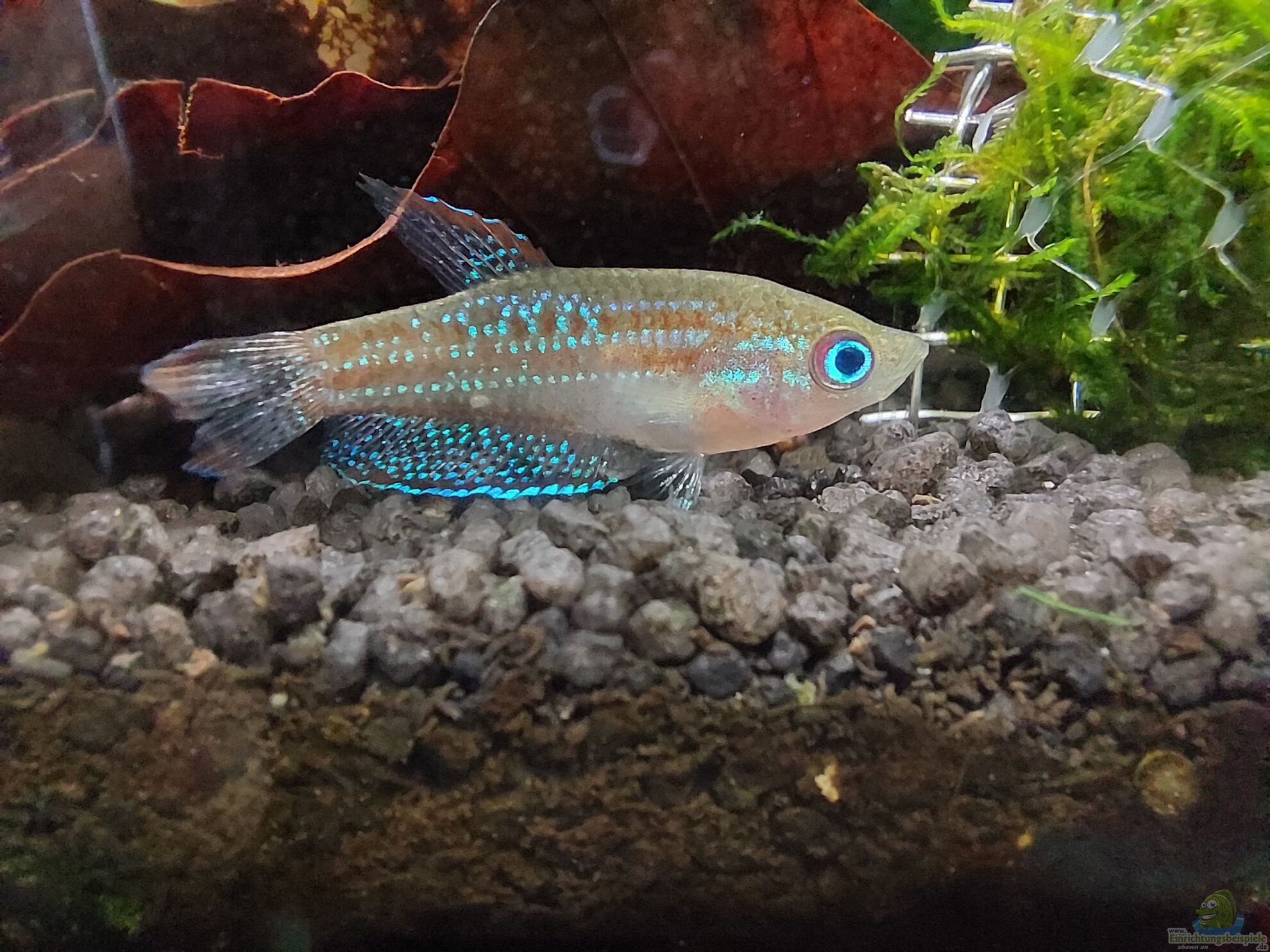 Zur Fortpflanzungszeit baut das Männchen von Trichopsis pumila ein Schaumnest an der Wasseroberfläche und bewacht nach er Balz das Gelege im Schaumnest.