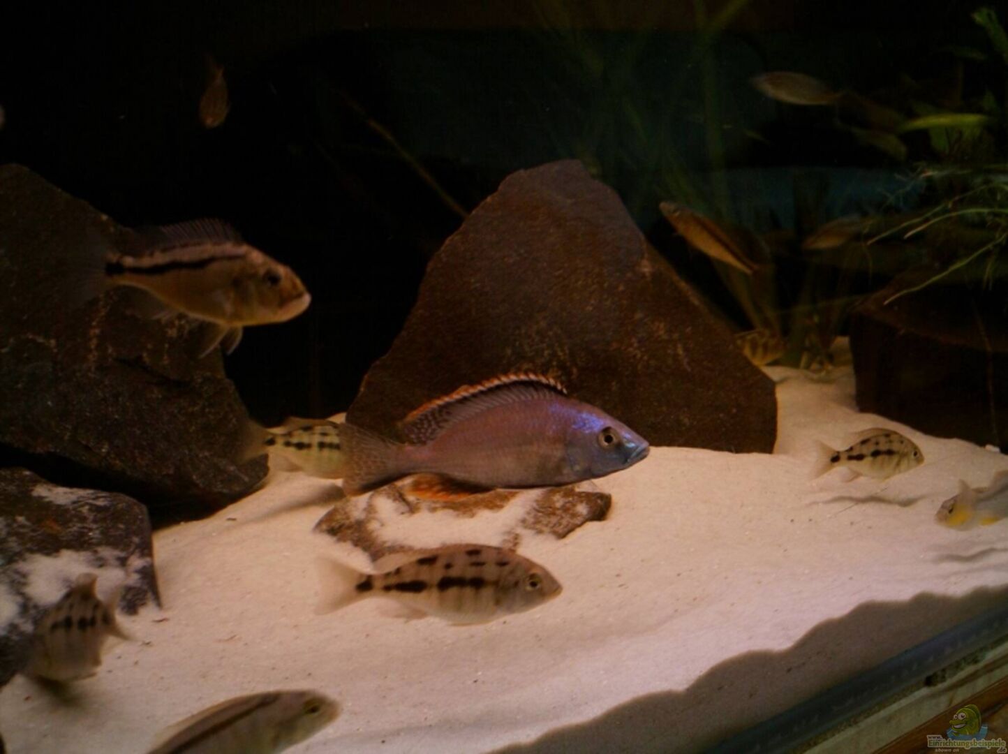 Als Einrichtung für das Aquarium für Dimidiochromis strigatus wird im Grunde nur eine ausreichend dicke Sandschicht und einige lose eingebrachte Felsen benötigt.
