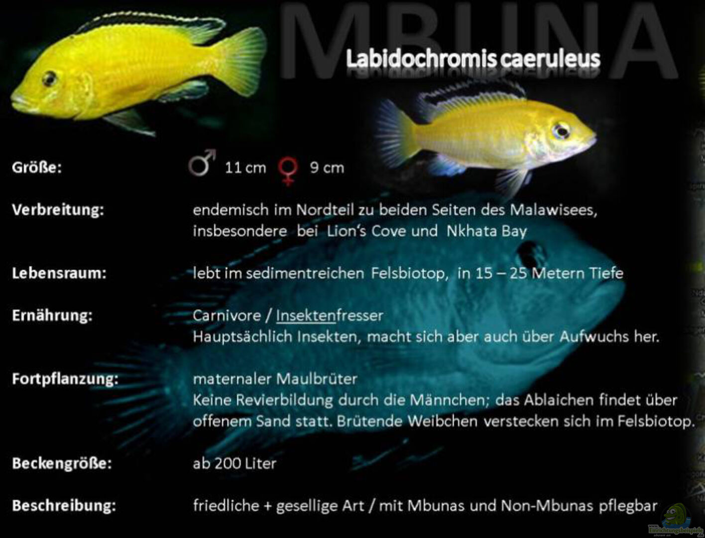 - Labidochromis chisumulae Diese Art ist überwiegend in Weiß- und Blautönen gefärbt und besitzt eine friedliche Grundnatur. Sie ist etwas seltener im Handel erhältlich, erfreut sich jedoch unter Liebhabern wachsender Beliebtheit.
