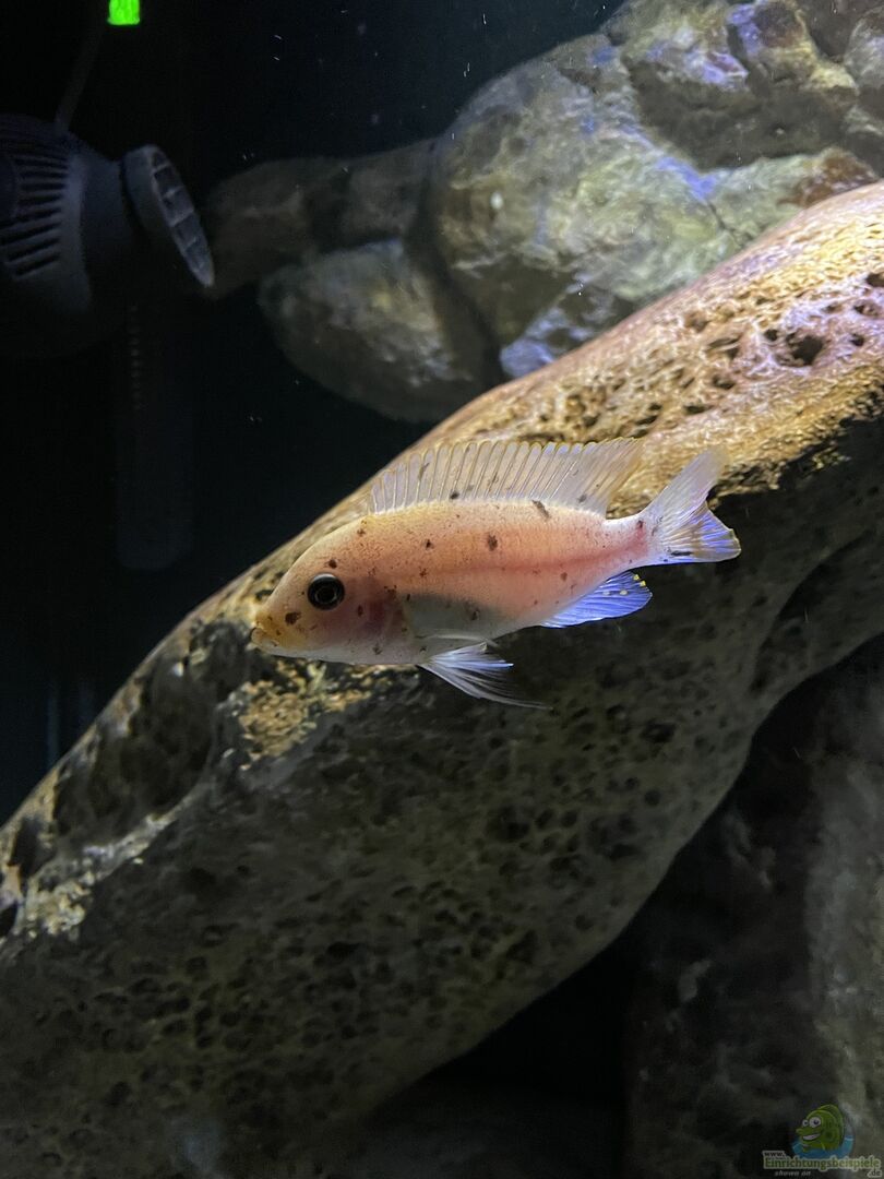 - Fortpflanzung: Die Art ist maulbrütend, genauer gesagt weiblich maulbrütend. Nach der Eiablage nimmt das Weibchen die Eier ins Maul und befruchtet sie mithilfe der Eiflecken an der Afterflosse des Männchens.