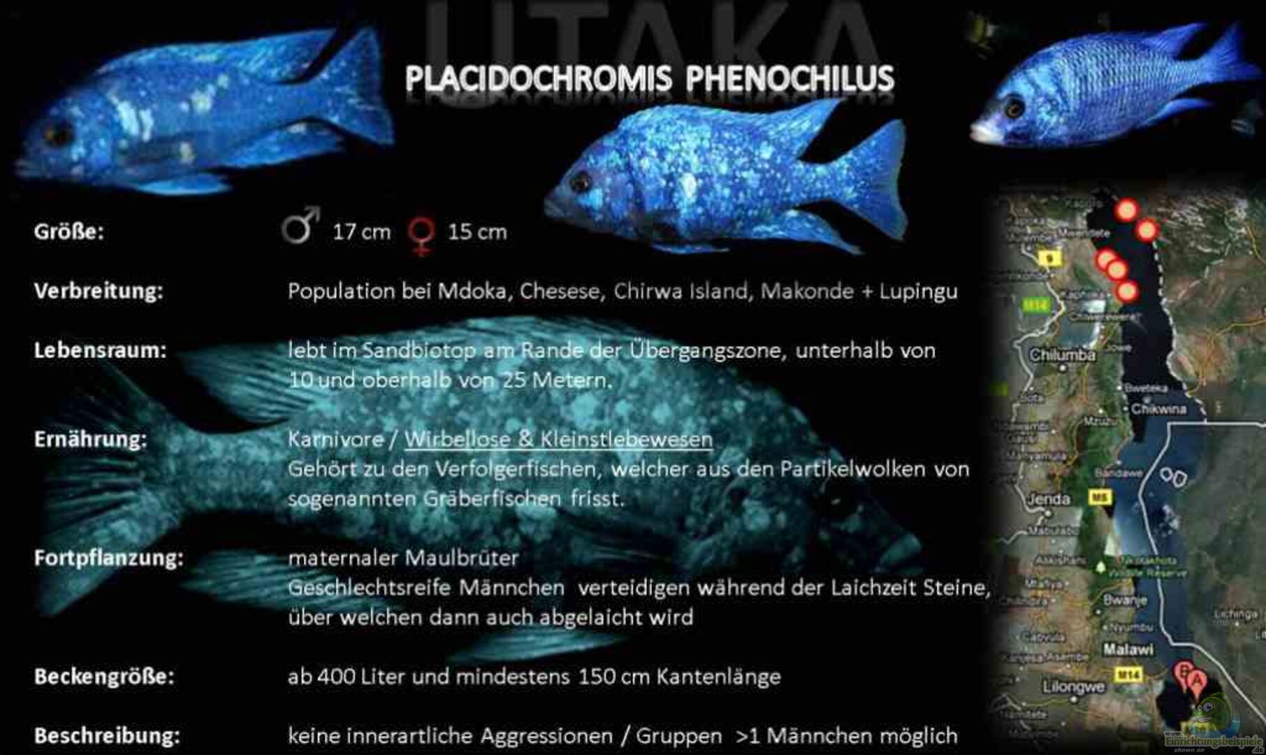 Wie praktisch alle Buntbarsche aus dem Malawisee sind auch sämtliche Arten aus der Gattung Placidochromis Maulbrüter im weiblichen Geschlecht.