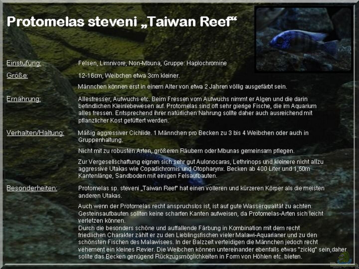Einrichtungsbeispiele für Protomelas steveni