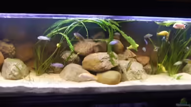 Das Aquarium für Pseudotropheus sp. "perspicax orange cap" sollte mit zahlreichen Steinen eingerichtet werden, so dass viele Höhlen und Spalten entstehen.