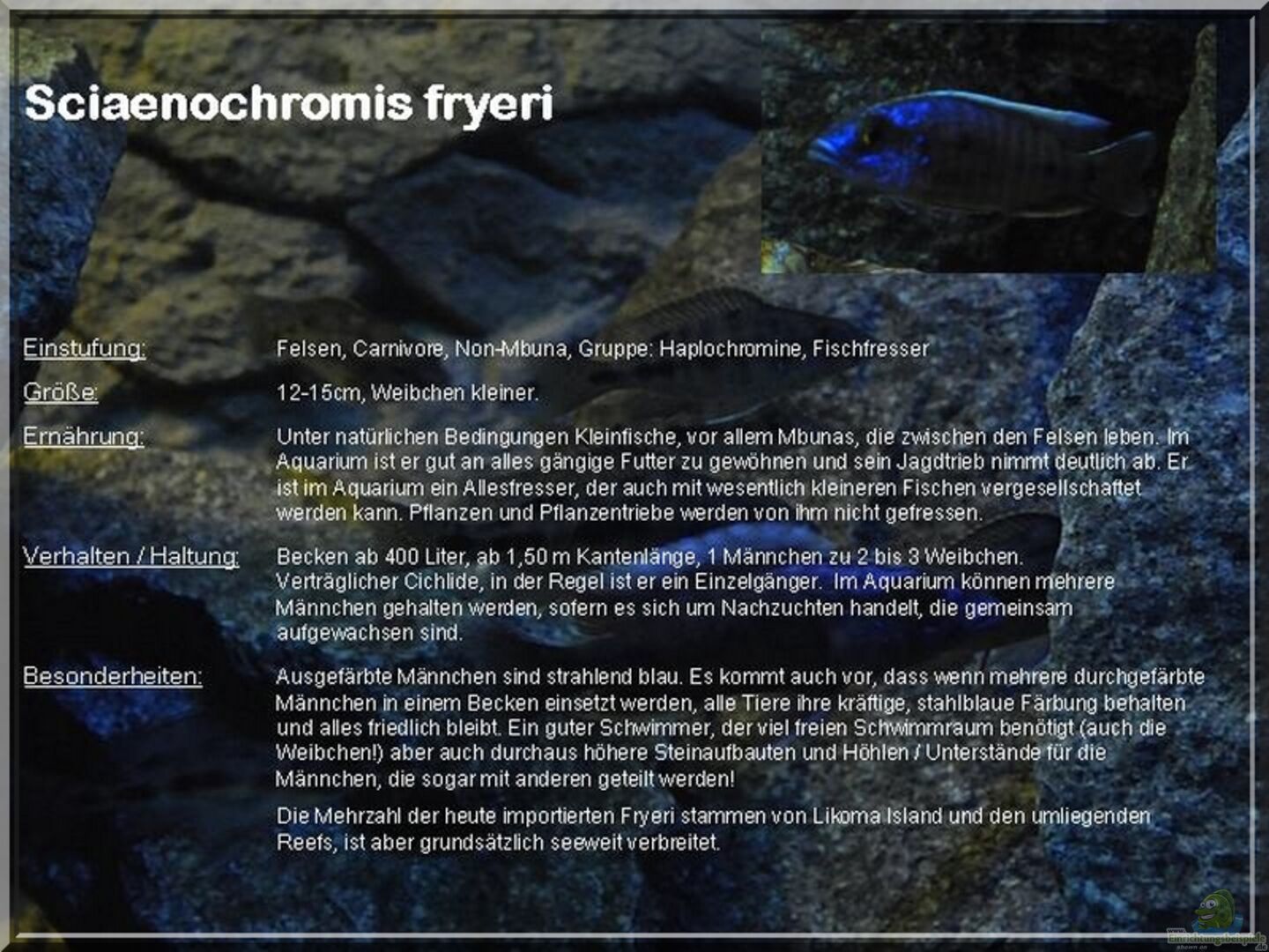- Wissenschaftlicher Name: Sciaenochromis fryeri