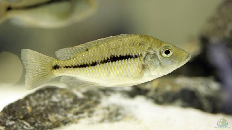 Das Aquarium für Stigmatochromis modestus sollte mit einer dicken Sandschicht und Steinaufbauten eingerichtet werden.