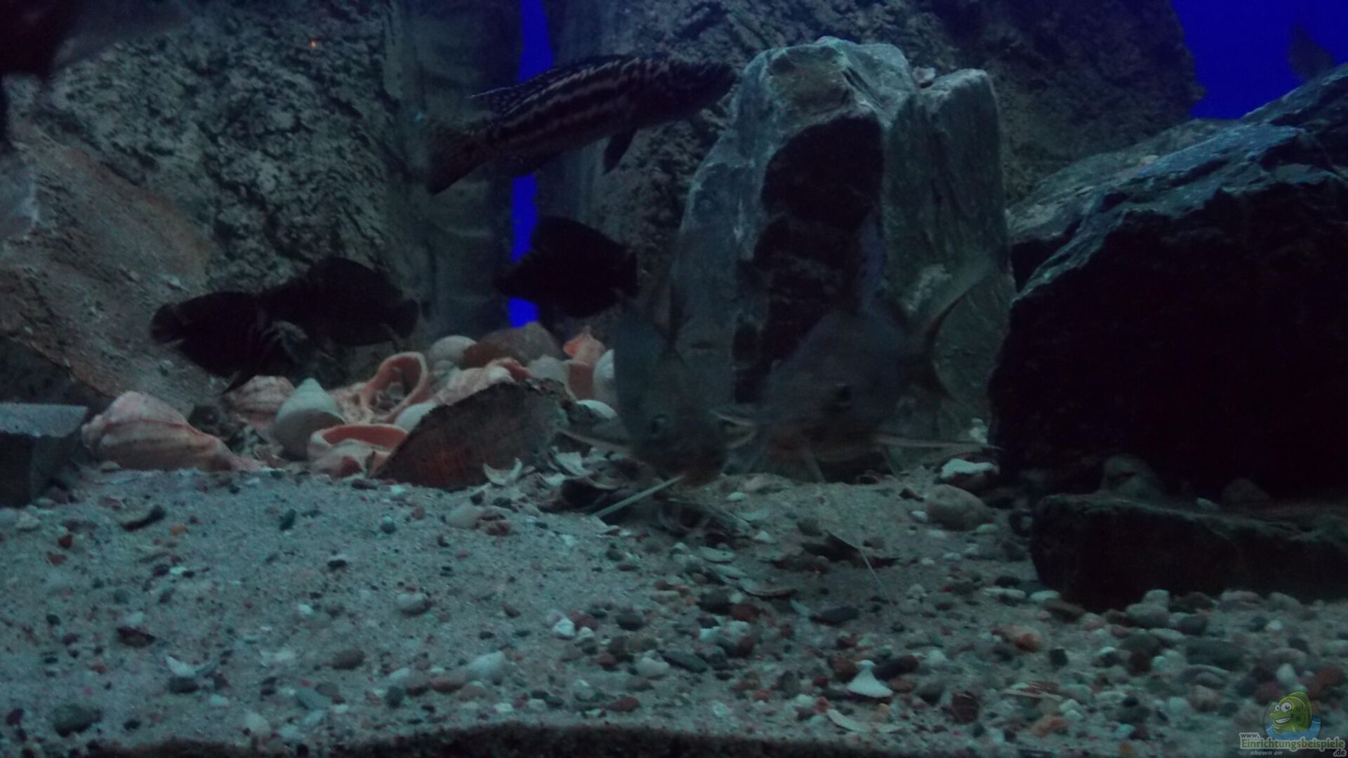 Die Einrichtung sollte aus einem Bodengrund aus Sand bestehen, sowie zahlreichen Steinen, die Höhlen und Rückzugsmöglichkeiten für die Fische bieten.