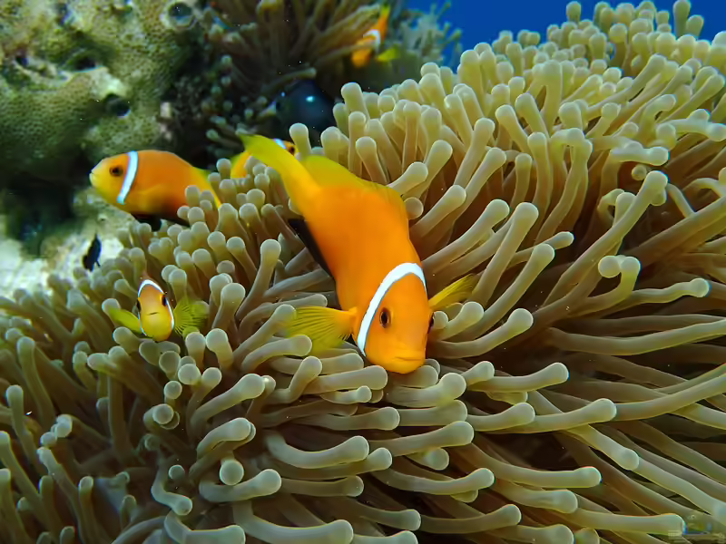 Als Symbioseanemonen kommt die Prachtanemone (Heteractis magnifica) in Frage.