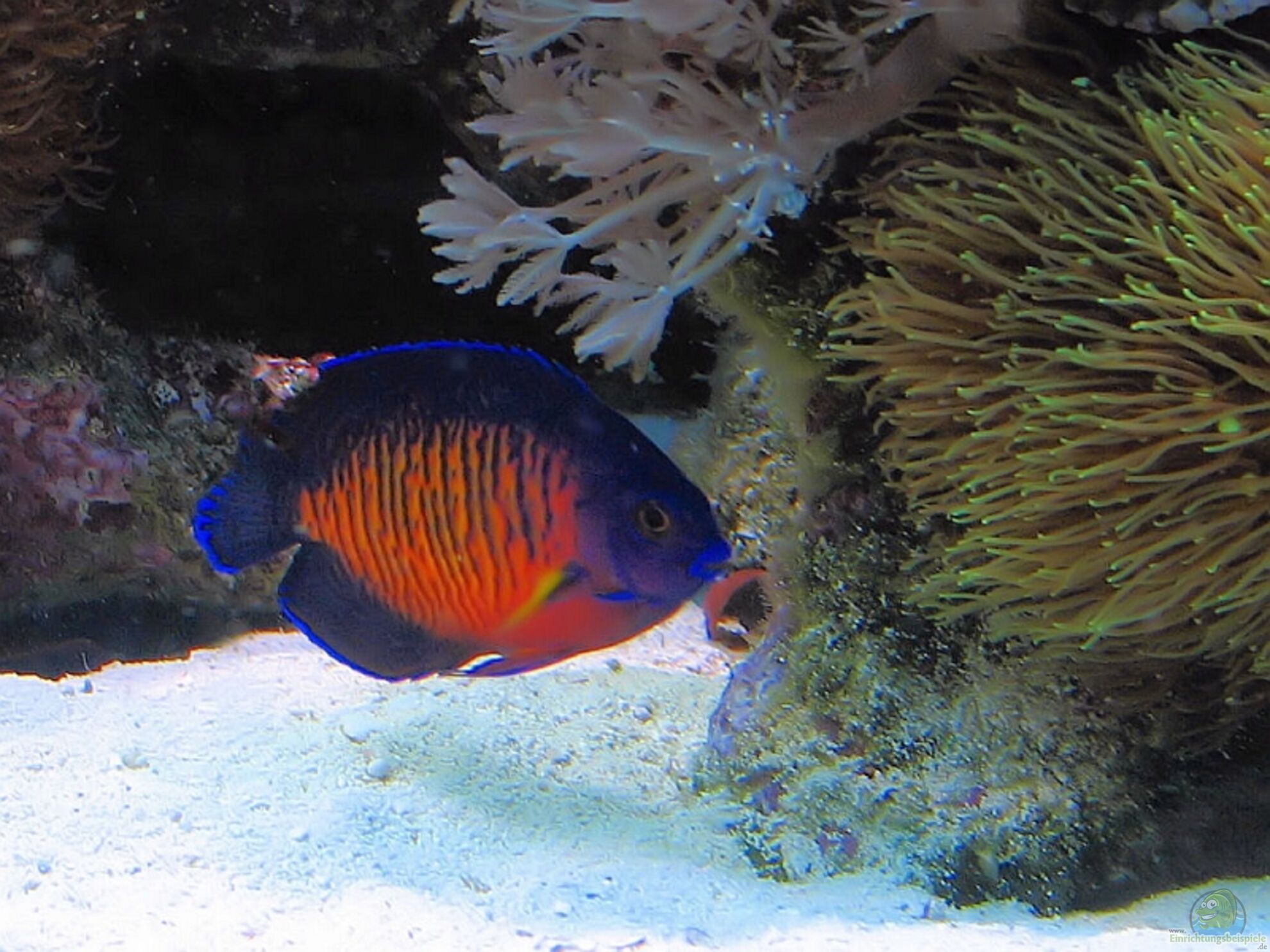 Im Aquarium erreichtCentropyge bispinosa eine maximale Größe von ca. 10 cm und kann in Aquarien ab 550 Litern Volumen gehalten werden.