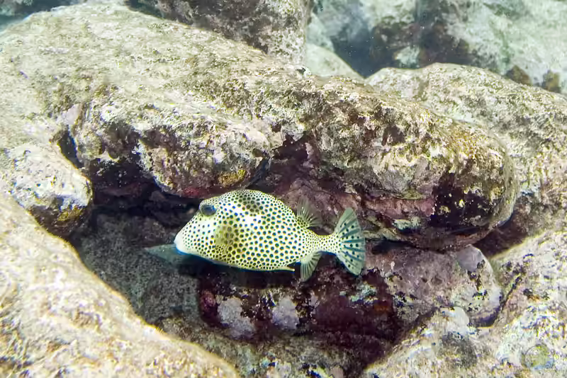 Bei Lactophrys bicaudalis (Schwarzpunkt-Kofferfisch) handelt es sich um einen Kugelfischartigen (Tetraodontiformes), der ursprünglich aus dem Karibik und dem Atlantik stammt.