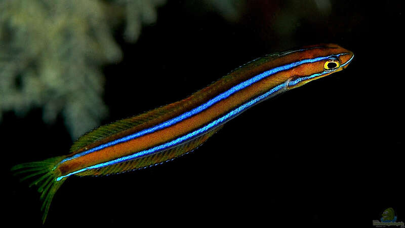 Bei Plagiotremus rhinorhynchos (Blaustreifen Blenny) handelt es sich um einen Lippfisch (Labridae), der ursprünglich aus dem Roten Meer und dem Indopazifik stammt.