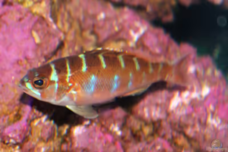 Bei Serranus tortugarum (Tabakbarsch) handelt es sich um einen Zwergbarsch (Pseudochromidae), der ursprünglich aus dem Atlantik und der Karibik stammt.
