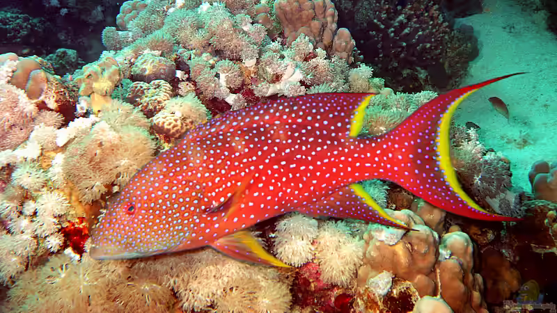 Bei Variola louti (Mondsichel-Juwelenbarsch) handelt es sich um einen Zackenbarsch (Serranidae), der ursprünglich aus dem Roten Meer und dem Indopazifik stammt.